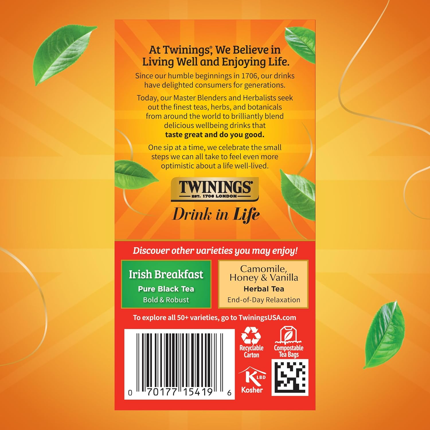 - DRINK IN LIFE: With a signature blend of tradition and innovation, Twinings encourages tea lovers to "Drink In Life" by taking small steps towards feeling good and living well, one sip at a time