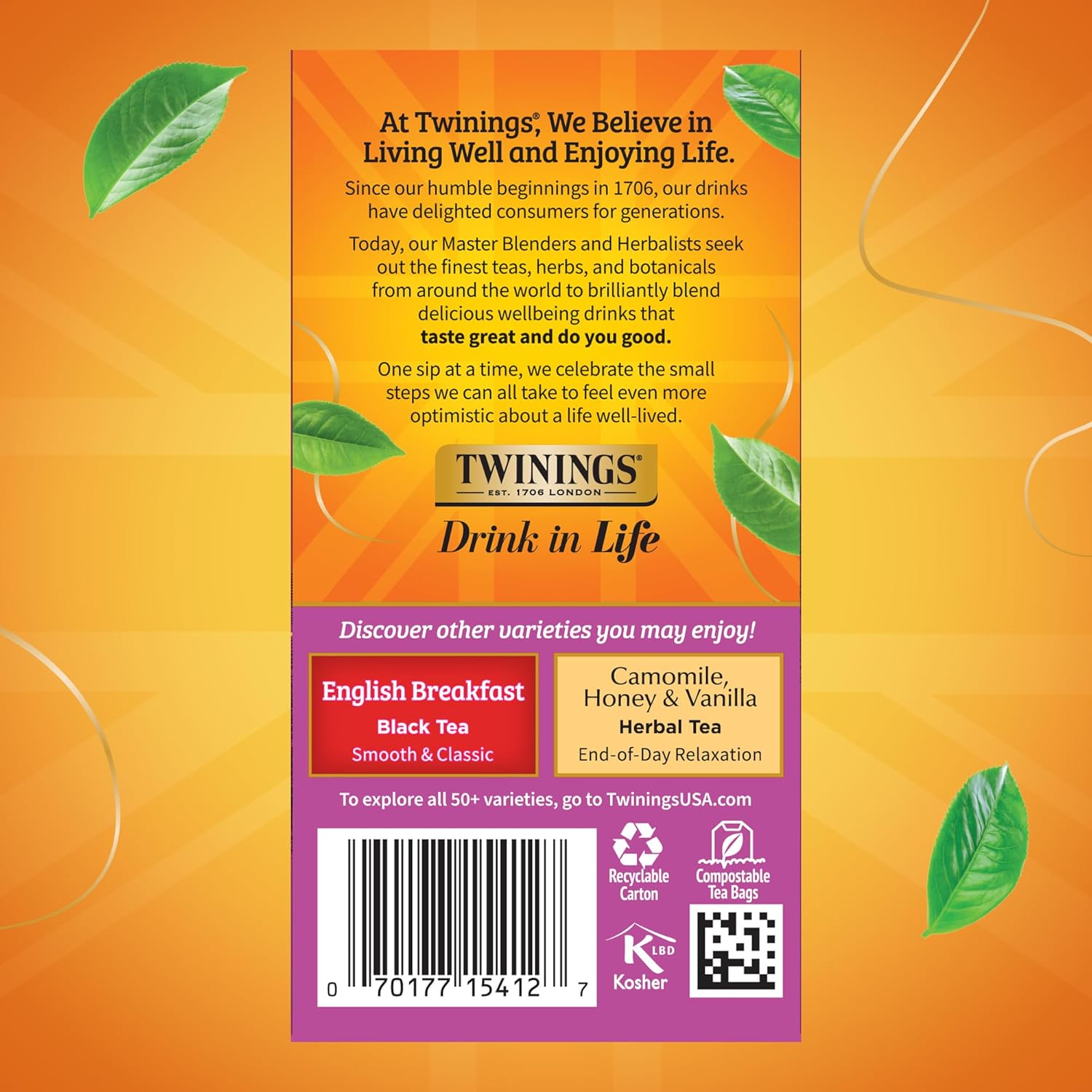 - DRINK IN LIFE: With a signature blend of tradition and innovation, Twinings encourages tea lovers to "Drink In Life" by taking small steps towards feeling good and living well, one sip at a time