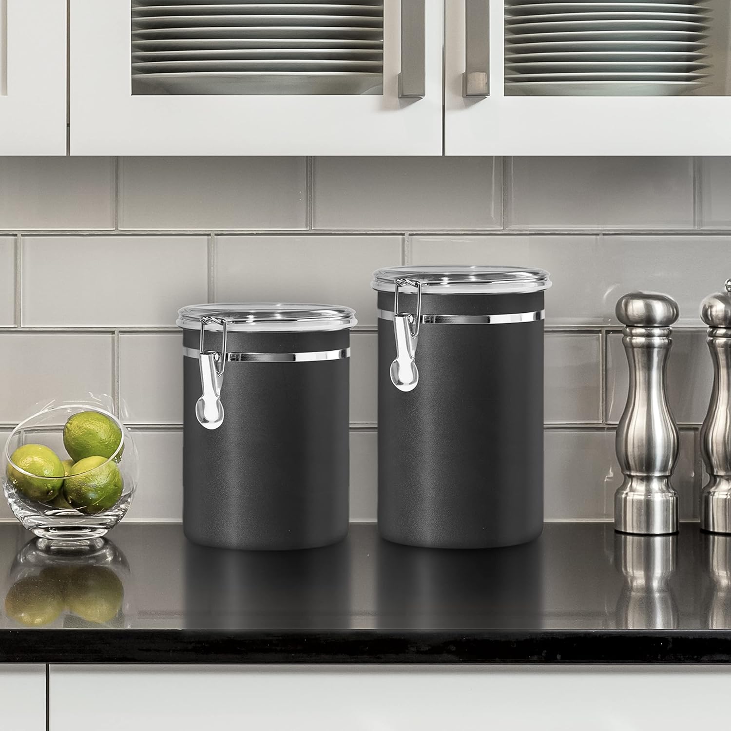 Oggi Stainless Steel Kitchen Canister 62 fl oz, Black - Airtight Clamp Lid, Clear See-Thru Top - Ideal for Kitchen Storage, Food Storage, Pantry Storage. Large Size 5" x 7.5".