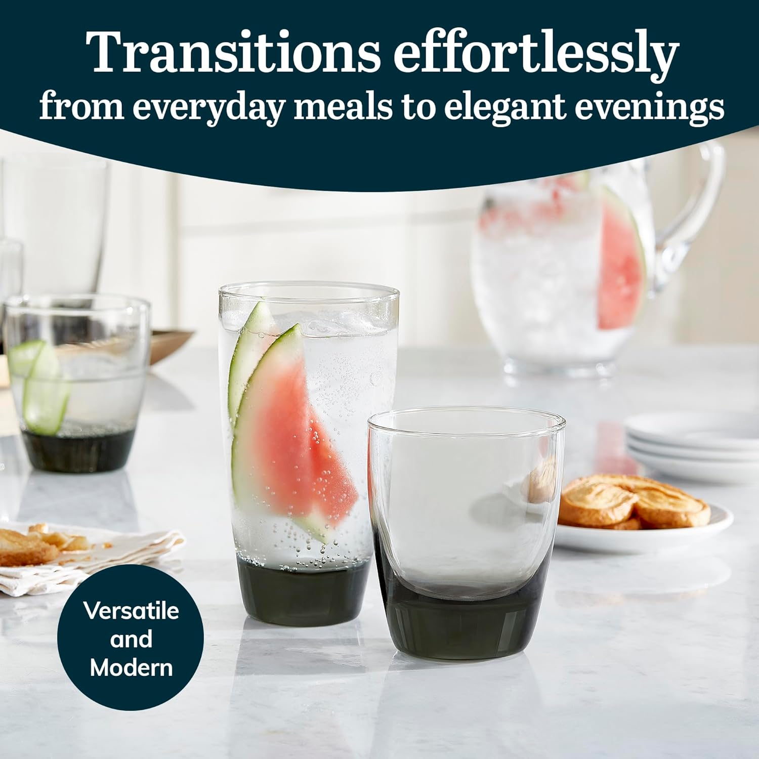 Libbey Classic Rocks and Tumbler Glasses Set of 16, Smoke Hue, Lead-Free Water Glasses, Dishwasher Safe Drinking Glasses Set