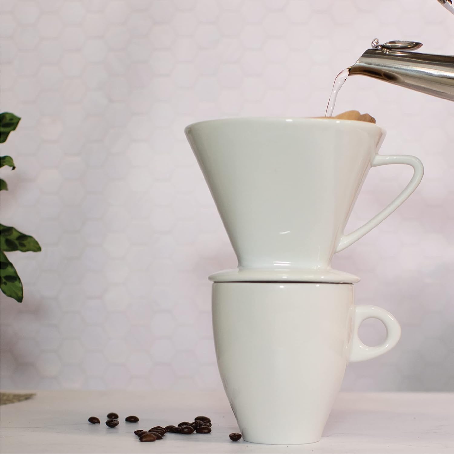 - SUPERIOR TASTING COFFEE: Brew great coffee the old fashioned way. Manual pour-over brewing with this porcelain filter holder lets you brew smooth, delicious coffee directly into a mug, pot, or insulated server in just minutes. You'll savor the fresh, delicious flavors that the pour-over method offers in every cup of coffee.