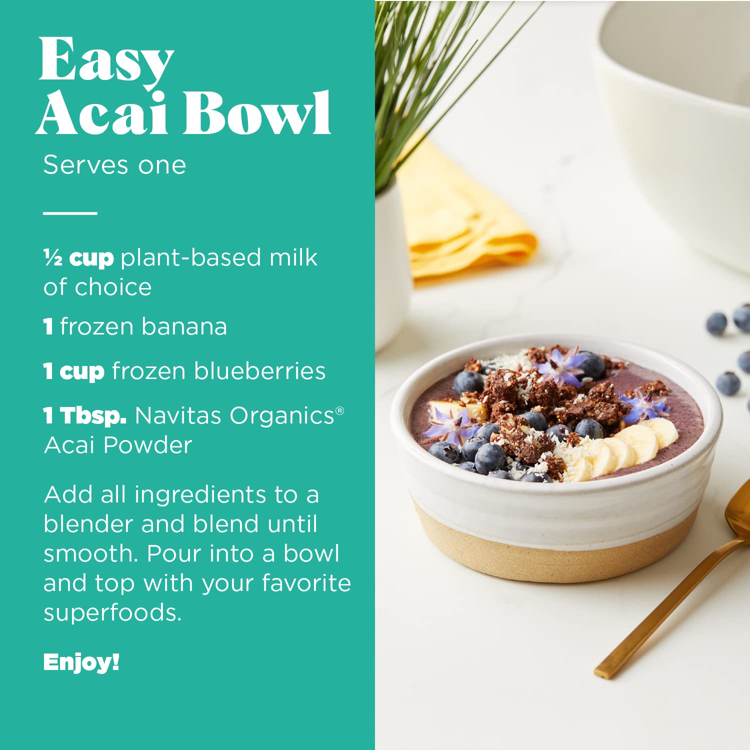 - PERFECT ACAI BOWLS: Freeze-dried acai puree can be blended with frozen bananas and berries for your best acai bowl yet! Also delicious in smoothies, yogurt, dips and sauces.
