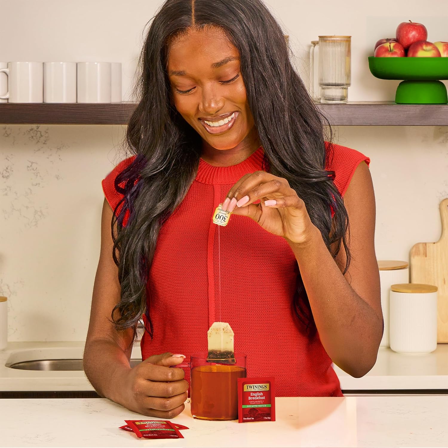 Twinings Decaffeinated English Breakfast Black Tea Individually Wrapped Bags, 25 Count (Pack of 6), Flavourful, Robust, Enjoy Hot or Iced, 150 Teabags
