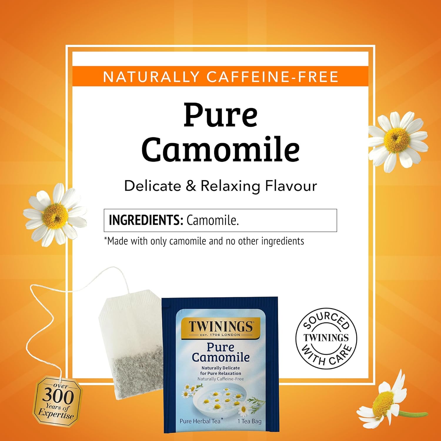 Twinings Pure Camomile Herbal Tea Individually Wrapped Bags, 25 Count (Pack of 6), Calming & Delicate, Naturally Caffeine-Free, Enjoy Hot or Iced, 150 Teabags