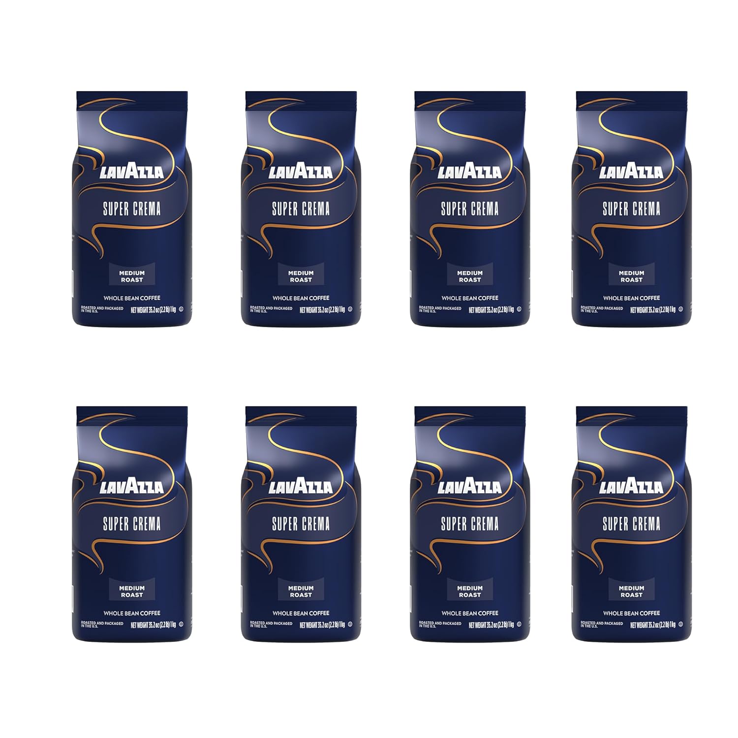 Lavazza Super Crema Whole Bean Coffee, Medium Espresso Roast, Arabica and Robusta Blend, 2.2 lb Bag (Pack of 8)