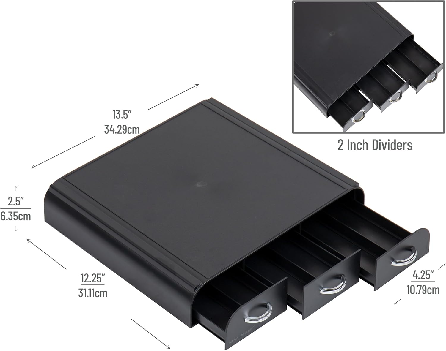 Mind Reader Single Serve Coffee Pod Organizer with 3 Drawers, 36 Pod Capacity, 13.5"L x 12.25"W x 2.5"H, Black