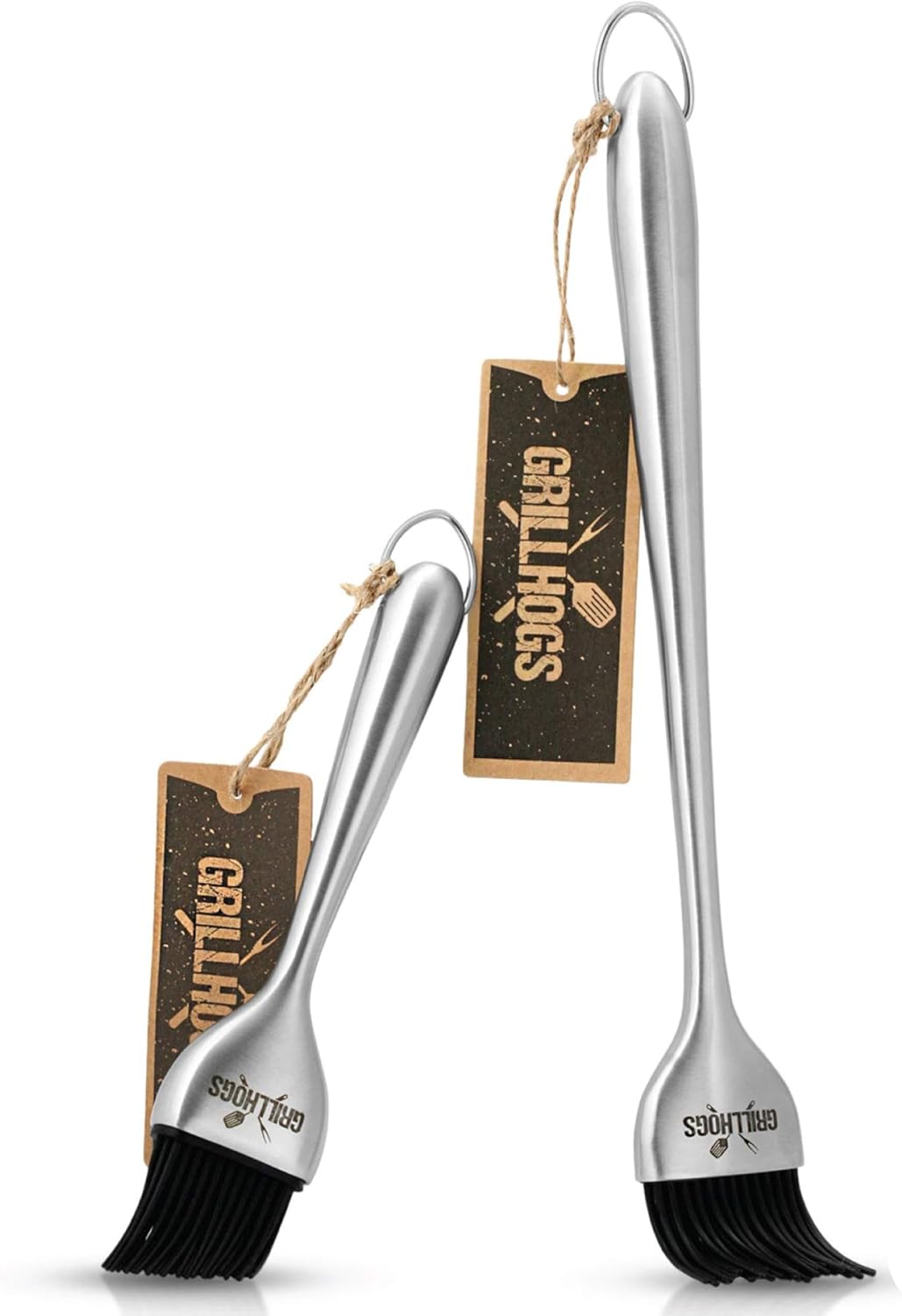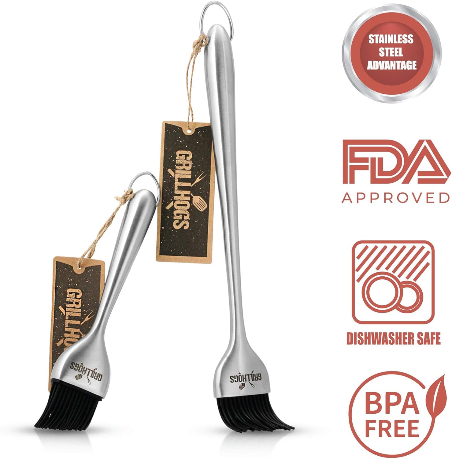 - BRING ON THE SAUCES: These GRILLHOGS basting brushes feature satin-finished 18/0 stainless steel and silicone bristles that were born to slather on sauce. With brush heads that are heat resistant up to 480° F, you can rest assured that these brushes can baste anything you’re grilling!