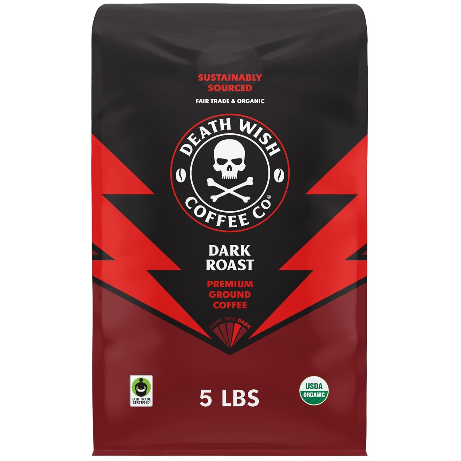 Death Wish Coffee Dark Roast Grounds - Bold Intense Blend of Arabica & Robusta Beans - USDA Organic Ground Coffee - 80 oz.