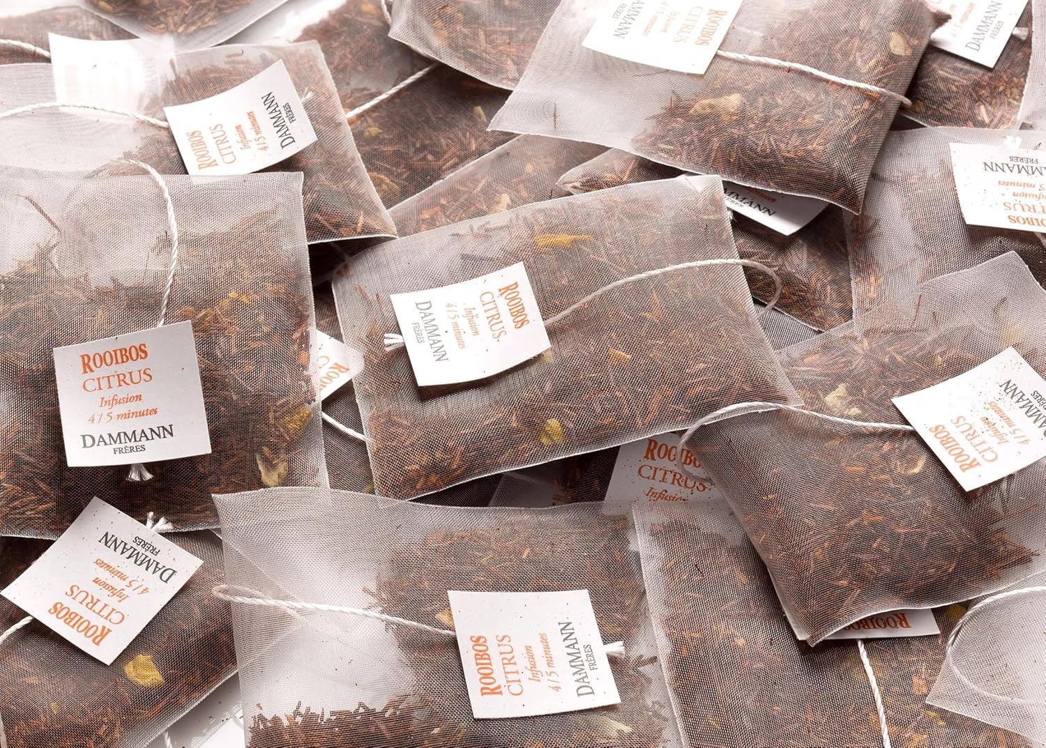 Dammann Freres Sachets, Rooibus Citrus Tea Bags, Premium Gourmet French Tea, Blend Lemon, Clementine, Orange Flavors, 25 Count (Single Pack)