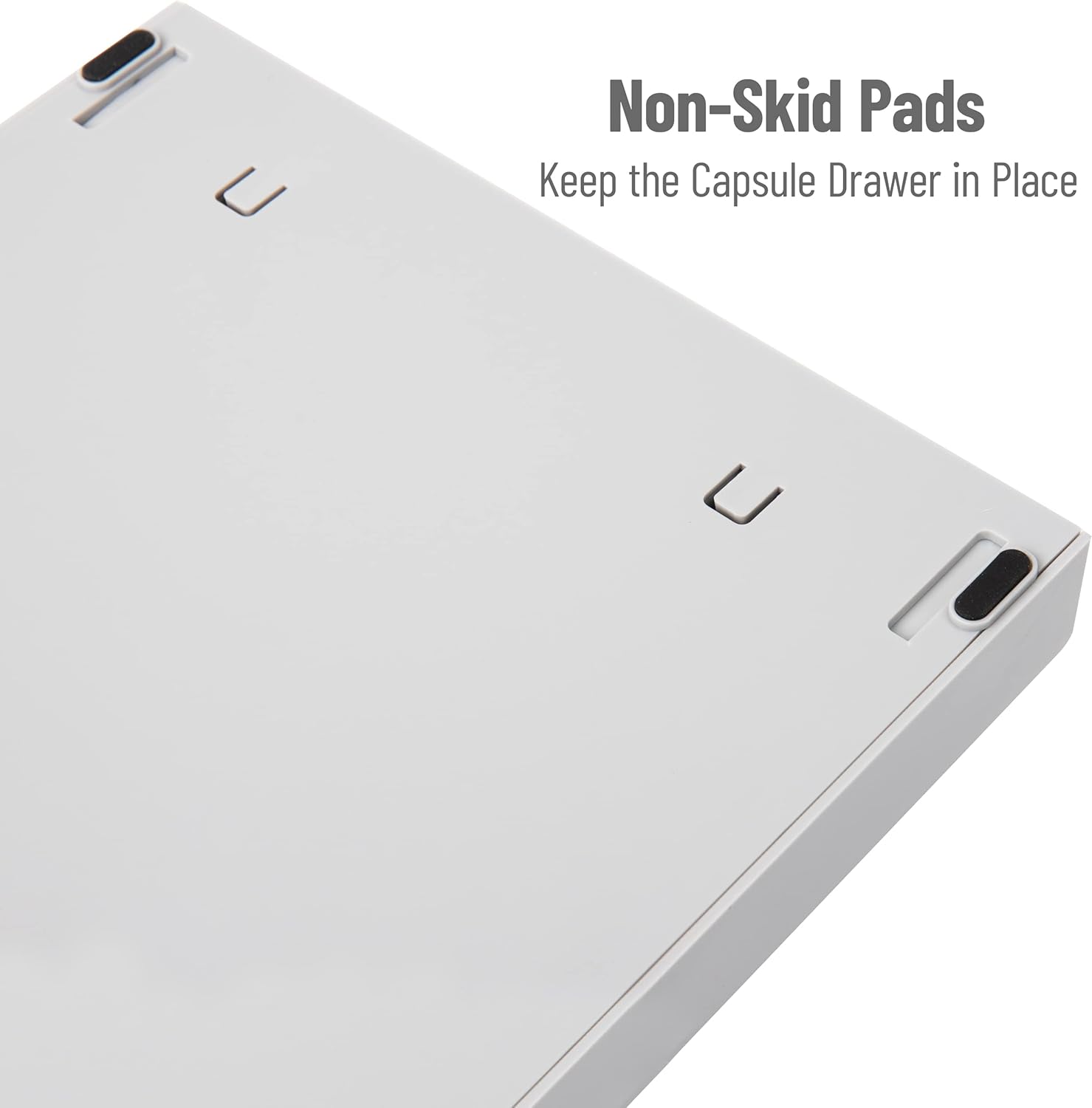 - Dimensions: The coffee capsule organizer is 9.25 wide x 15 long x 2 inches tall (23.50 x 38.1 x 5.08 centimeters) and weighs 2.67 lbs (1.21 kilograms)