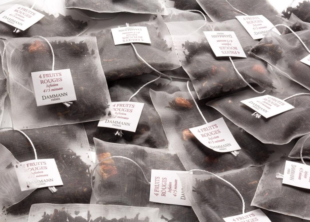 Dammann Freres Sachets, Quatre Fruits Rouges Tea Bags, Premium Gourmet French Black Tea, Blend Strawberry, Cherry, Raspberry, Red Currant Flavors, 25 Count (Single Pack)