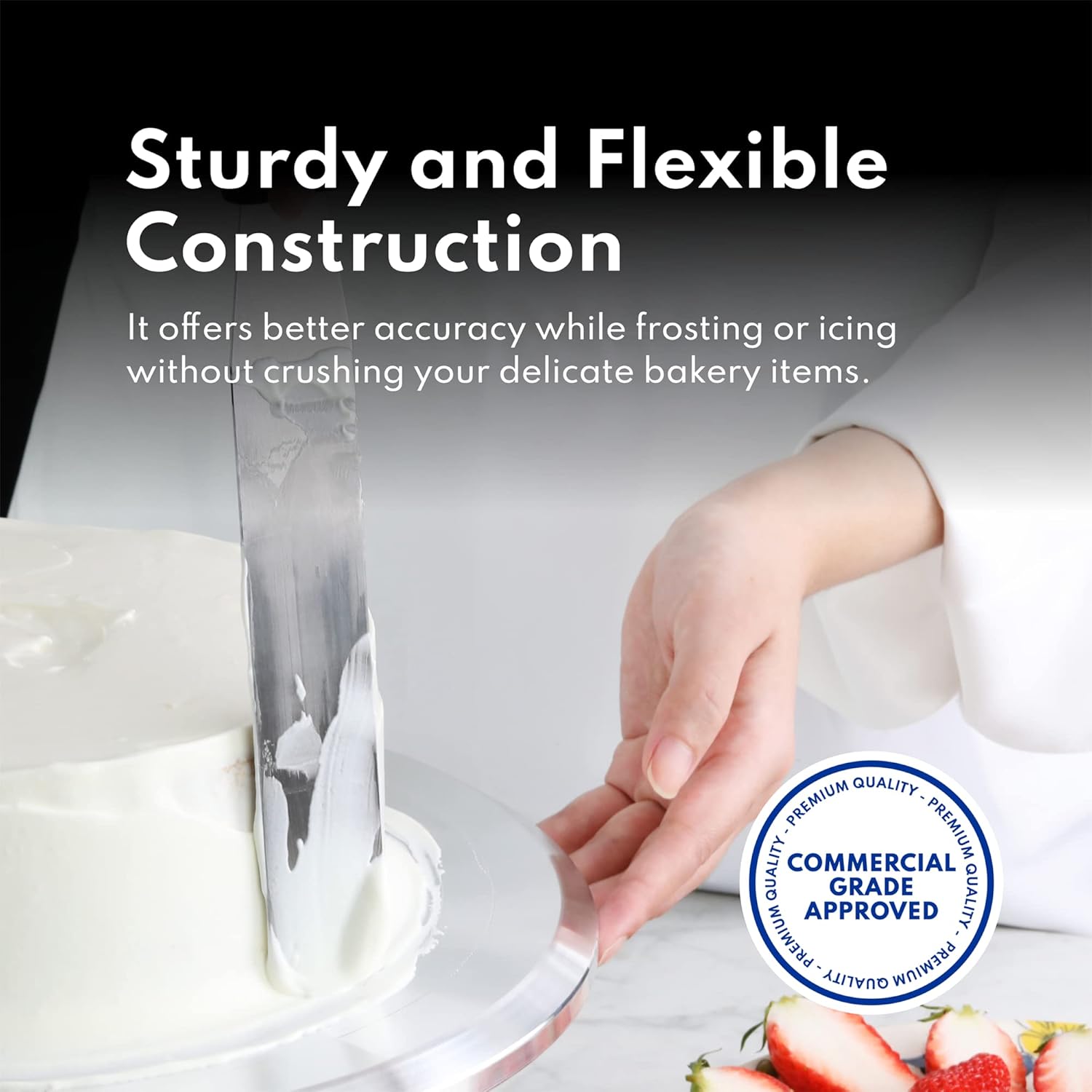 - Flexible stainless steel blade is the perfect thickness for gliding over icing