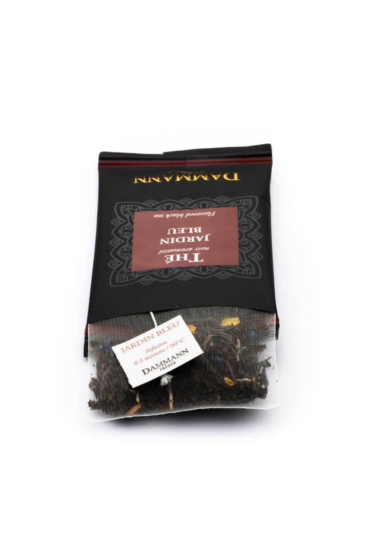 Dammann Freres Sachets, Jardin Bleu Tea Bags, Premium Gourmet French Black Tea, Blend Strawberry, Rhubarb Flavors, Individually Wrapped, 24 Count (Single Pack)