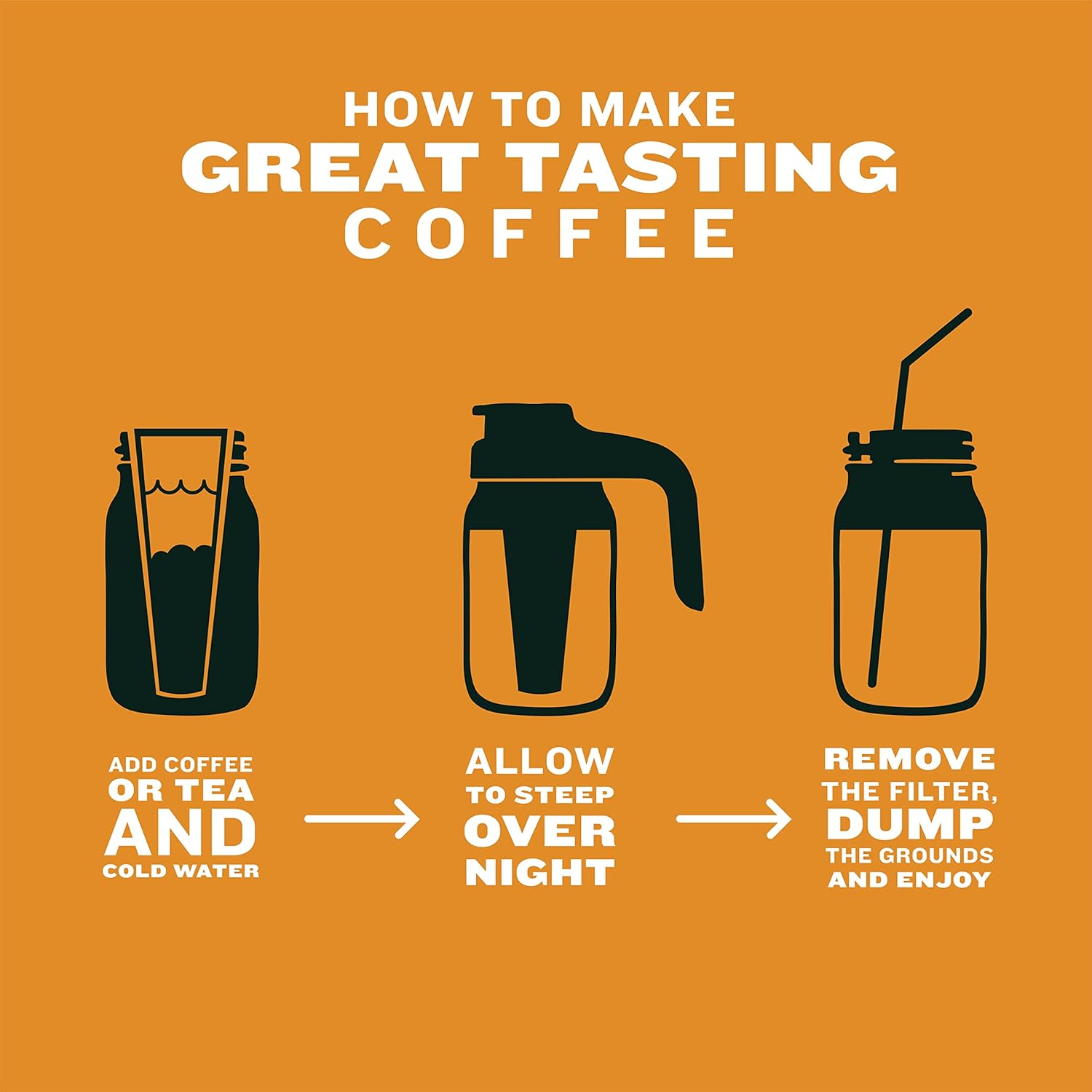 - SIMPLE TO USE & CLEAN: Making cold brew has never been more straightforward. Our easy-to-use design takes the complexity out of the brewing process. Simply fill the filter with your favorite coffee grounds, add cold water, and let it steep! Cleanup is a breeze with dishwasher-safe components (DO NOT ADD BOILING WATER)