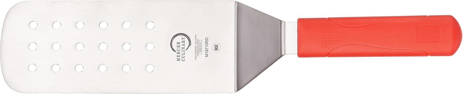 Mercer Culinary Millennia Perforated Turner, 8 Inch x 3 Inch Blade, Red Handle