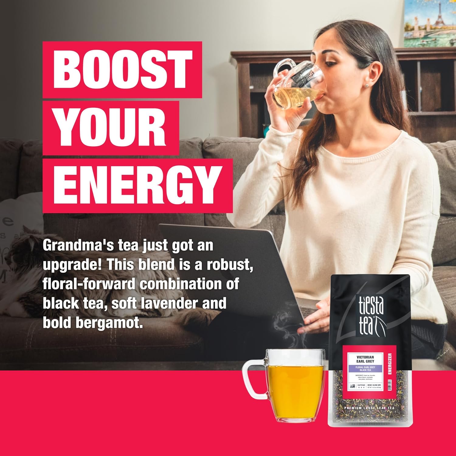 Tiesta Tea - Victorian Earl Grey, Loose Leaf, Floral Earl Grey Black Tea, Premium Blend, High Caffeinated Black, Make Hot or Iced Brews Up to 200 Cups, 16oz Resealable Bulk Pouch