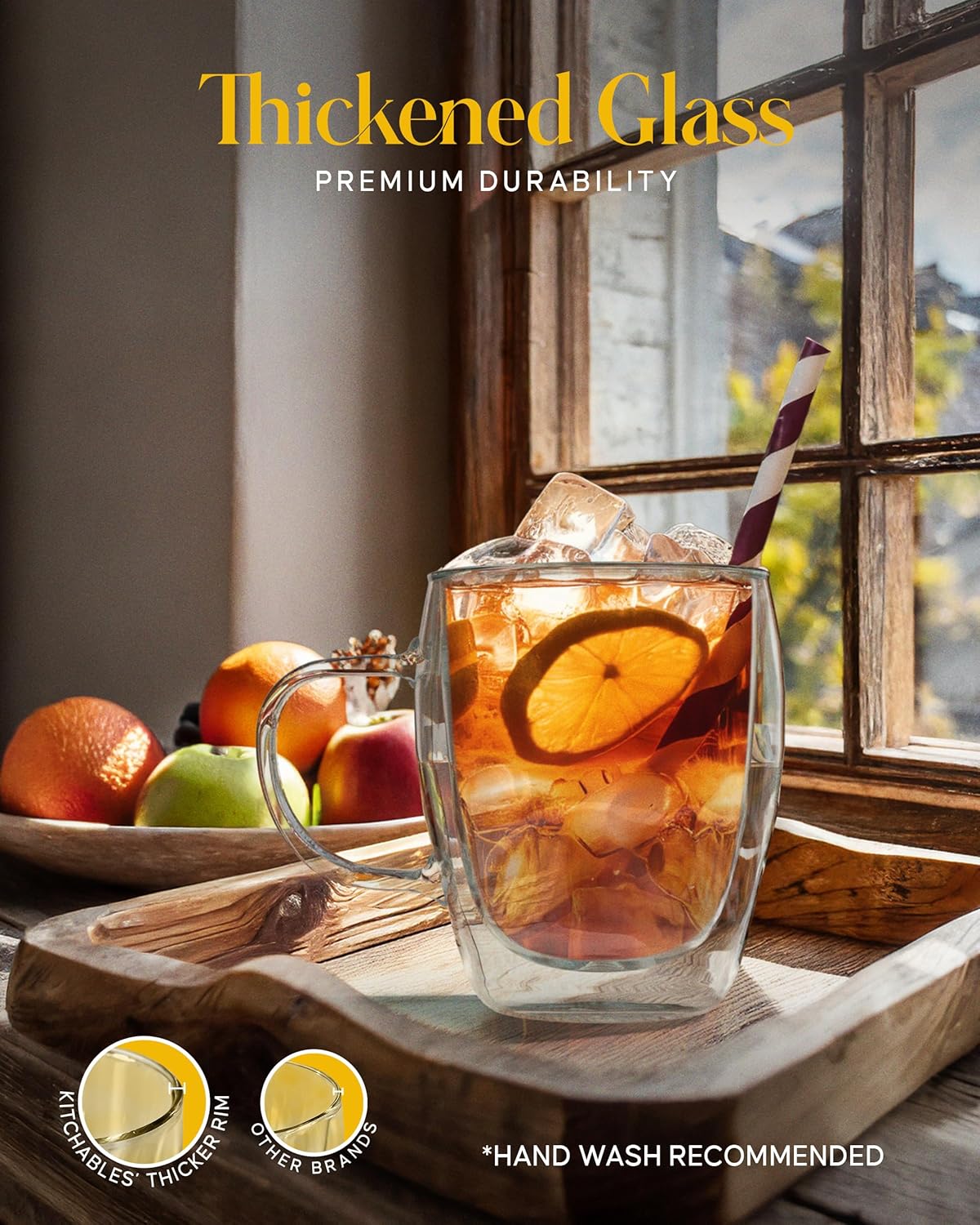 - Won’t Burn Your Fingers - Savor your piping hot drinks with ease immediately after brewing or steeping. Kitchables double walled glass coffee mugs set are crafted using heat transfer-resistant borosilicate glass with ergonomic handles for comfortable drinking.