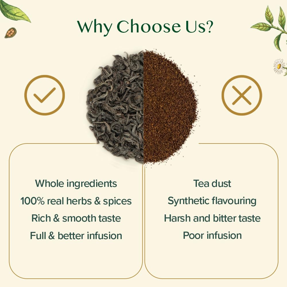 - DIRECTLY SOURCED FROM THE PREMIUM PLANTATIONS - Indulge in the finest tea experience with our Whole Loose Leaf Tea sourced directly from the premium plantations in India. Tea leaves are vacuum sealed & packed within 24 to 72 hours of harvesting to give you garden fresh tea with the amazing aroma, taste & the assurance of truly ethical, fair trade price to farmers. Preparation: 2g of loose leaf | 200 ml water at 100° C | 3 - 5 mins