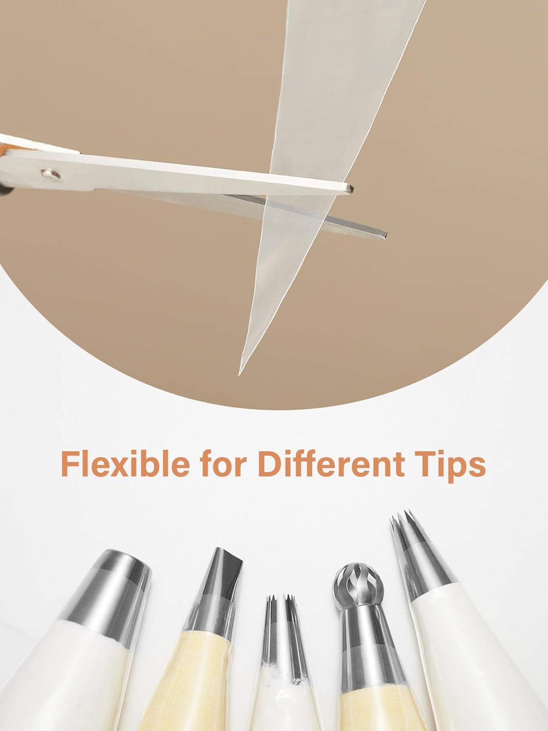 - Food-Safe and Large Capacity: The frosting piping bags are made from food-safe materials, ensuring that they are safe for direct contact with food. Additionally, their 12" capacity allows you to fill each bag with more icing, reducing the need for frequent refilling during decorating.