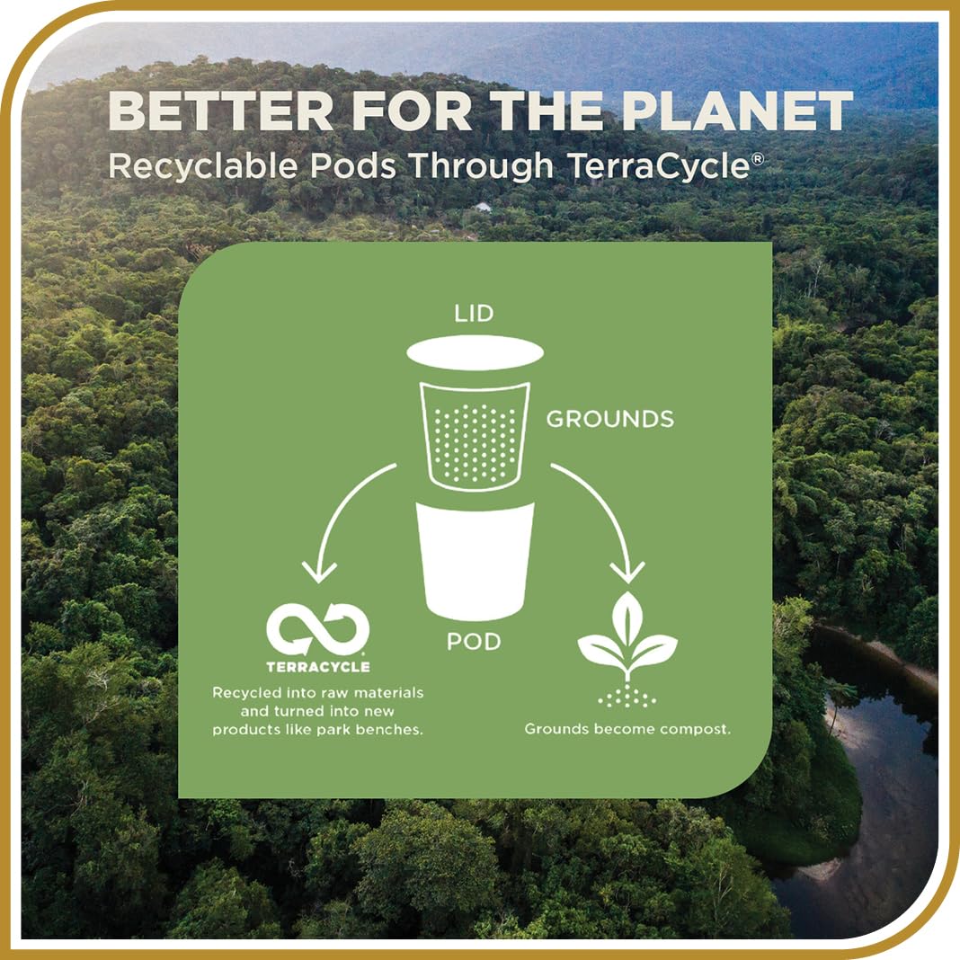 - Smart Choice: Our single-serve pods are recyclable through TerraCycle, reducing waste. We focus on sustainable sourcing and eco-friendly practices throughout our production process, ensuring a greener cup of coffee.