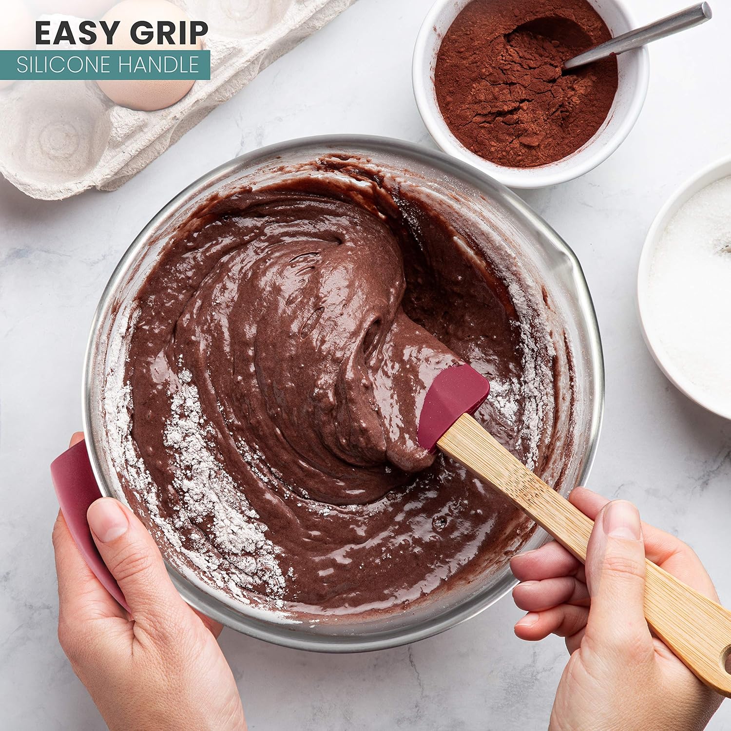 AVACRAFT 18/10 Stainless Steel Mixing Bowls with Lids, non slip silicone base bowls with Handle, Mixing Bowl Set with Pour Spouts & Measurement Marks, Home Essentials Cooking Bowls, (Red)