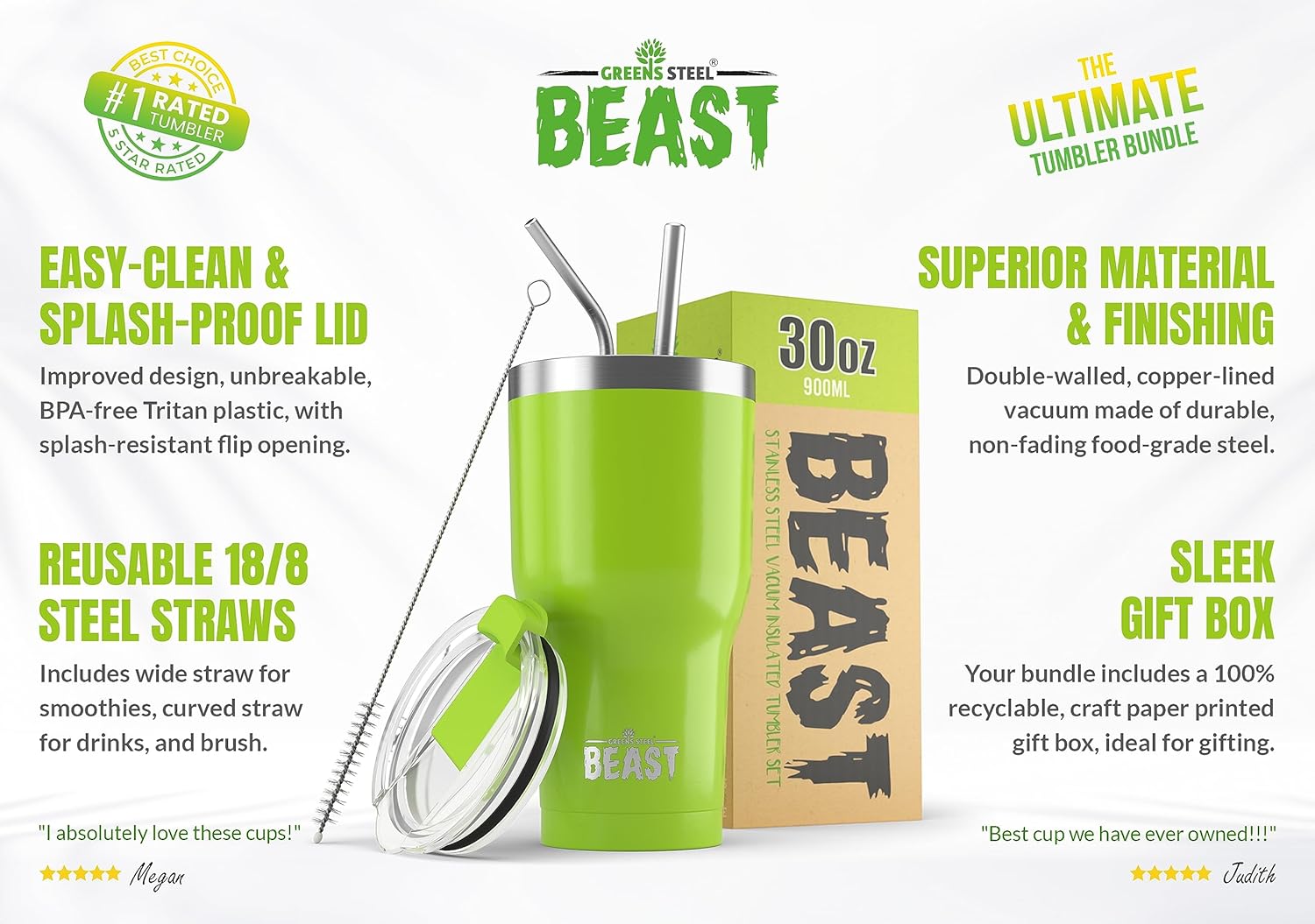 - EXCLUSIVE BONUS BUNDLE - Offering unrivaled value for money: 2 unbreakable straws: 1 curved; great for water + 1 wider & straight; ideal for shakes & smoothies + a straw brush & our upgraded pop up lid for super easy cleaning! Presented in a beautiful Gift Box. With so many second-rate tumblers available on the market we wanted to set ourselves apart and be the best!
