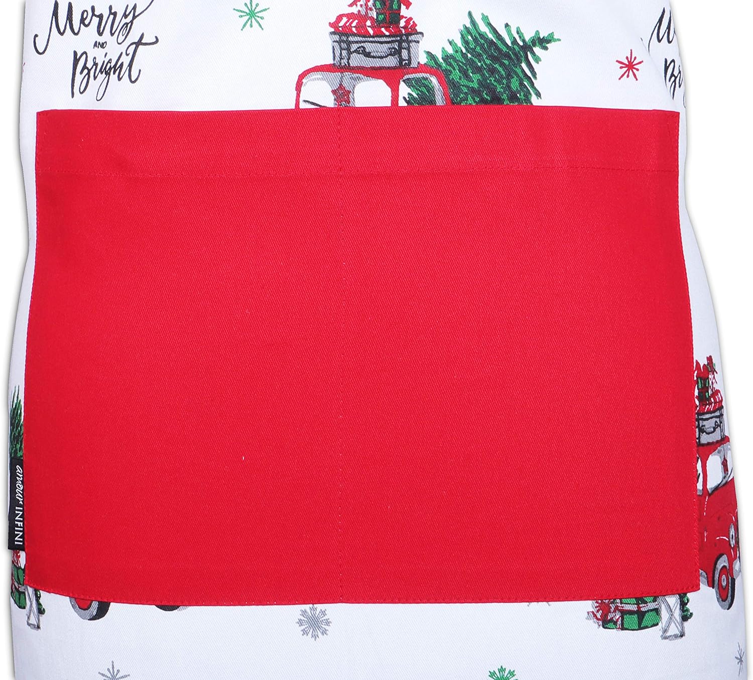 AMOUR INFINI Cotton Womens Apron for Kitchen, Grilling, Baking with Pockets & Adjustable Strap Washable, Reusable Spring Apron (27.5 x 33 Inches)