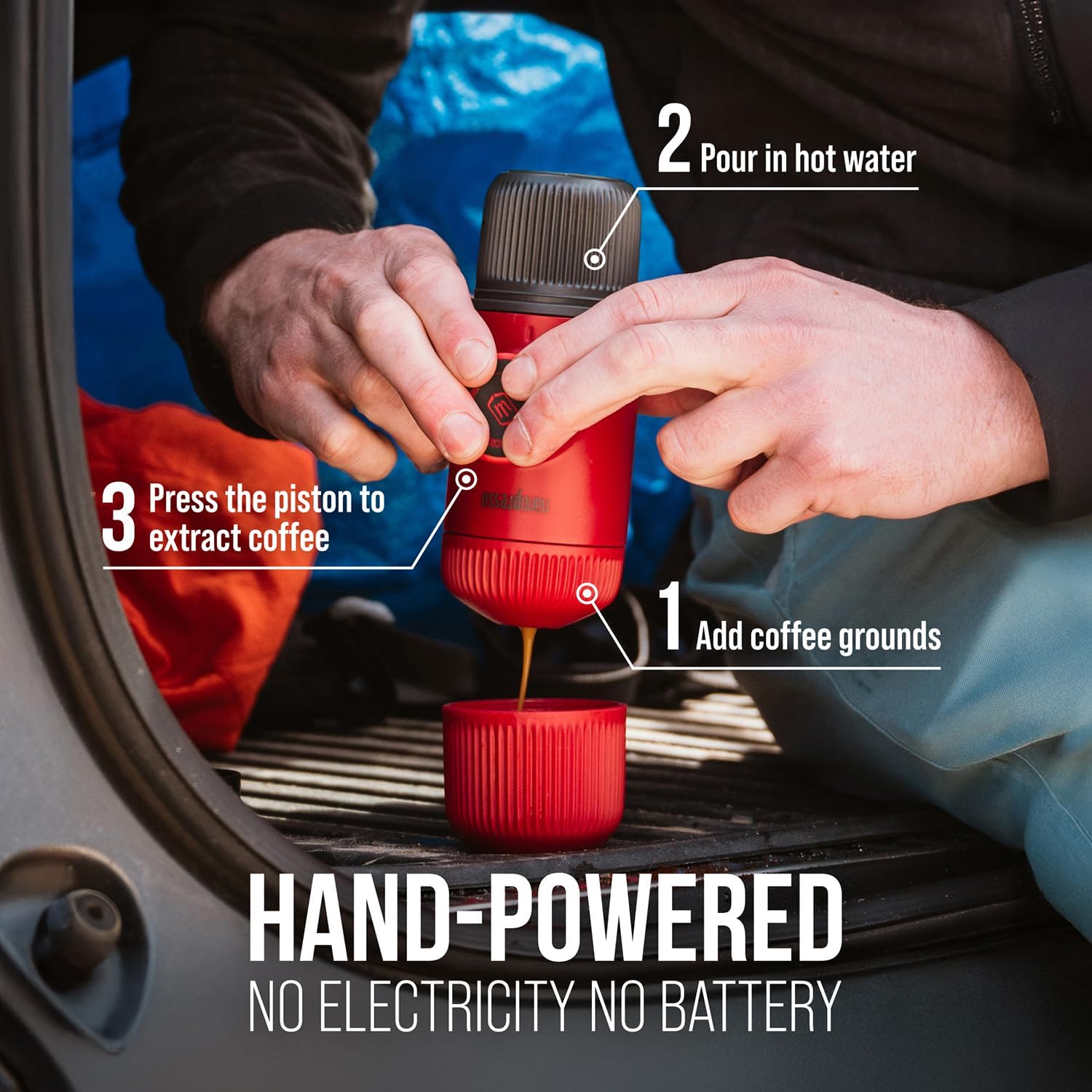 WACACO Nanopresso Portable Espresso Maker, Upgrade Version of Minipresso, 18 Bar Pressure, Mini Travel Coffee Machine, Manually Operated, Perfect for Camping and Hiking, Red