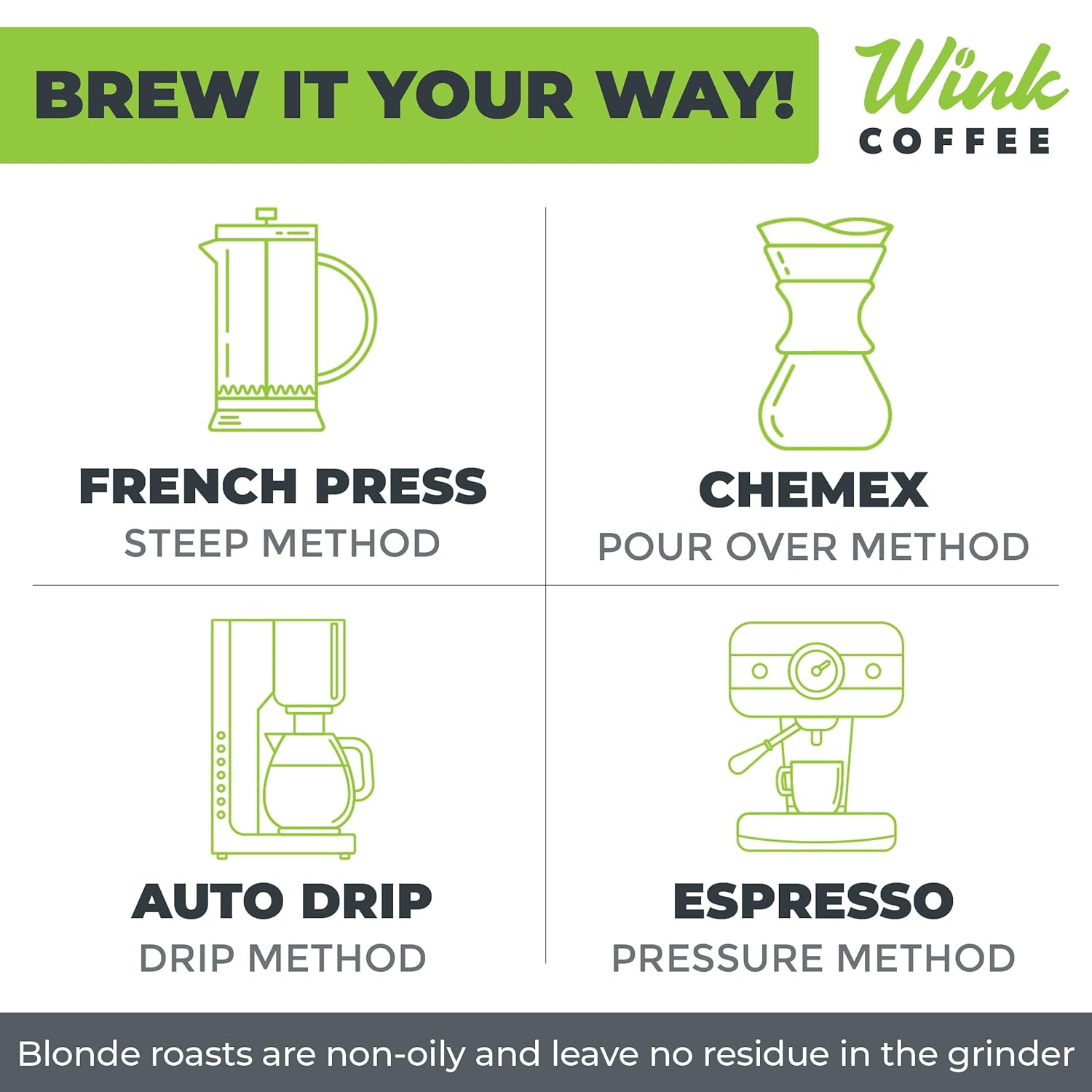 - MORE THAN JUST COFFEE: Wink Coffee blends sustainability, care, and small-batch craft into every bag. It’s about more than caffeine—it’s about savoring moments. Start your day right with a coffee that’s made to matter.