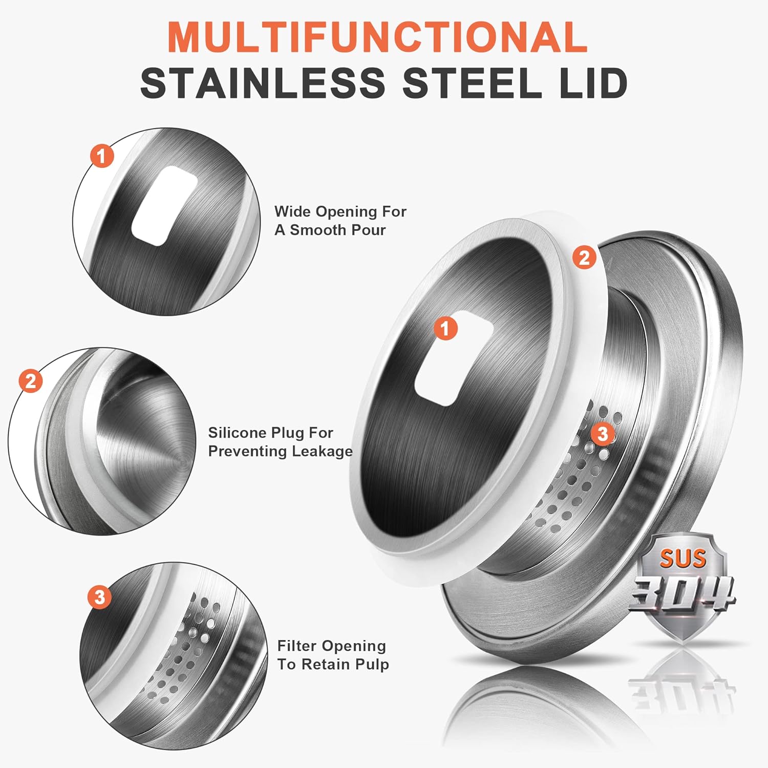 - Designed for Homemade Beverages: This glass pitcher comes with a dual opening 18/8 stainless steel lid, which can be adjusted as you like, making it easy to retain pulp and ice cubes or pour beverages quickly. The drip-proof spout and ergonomic handle make pouring a breeze, and the food-grade silicone around the lid fits snugly against the body of the jug to avoid wetting the countertop