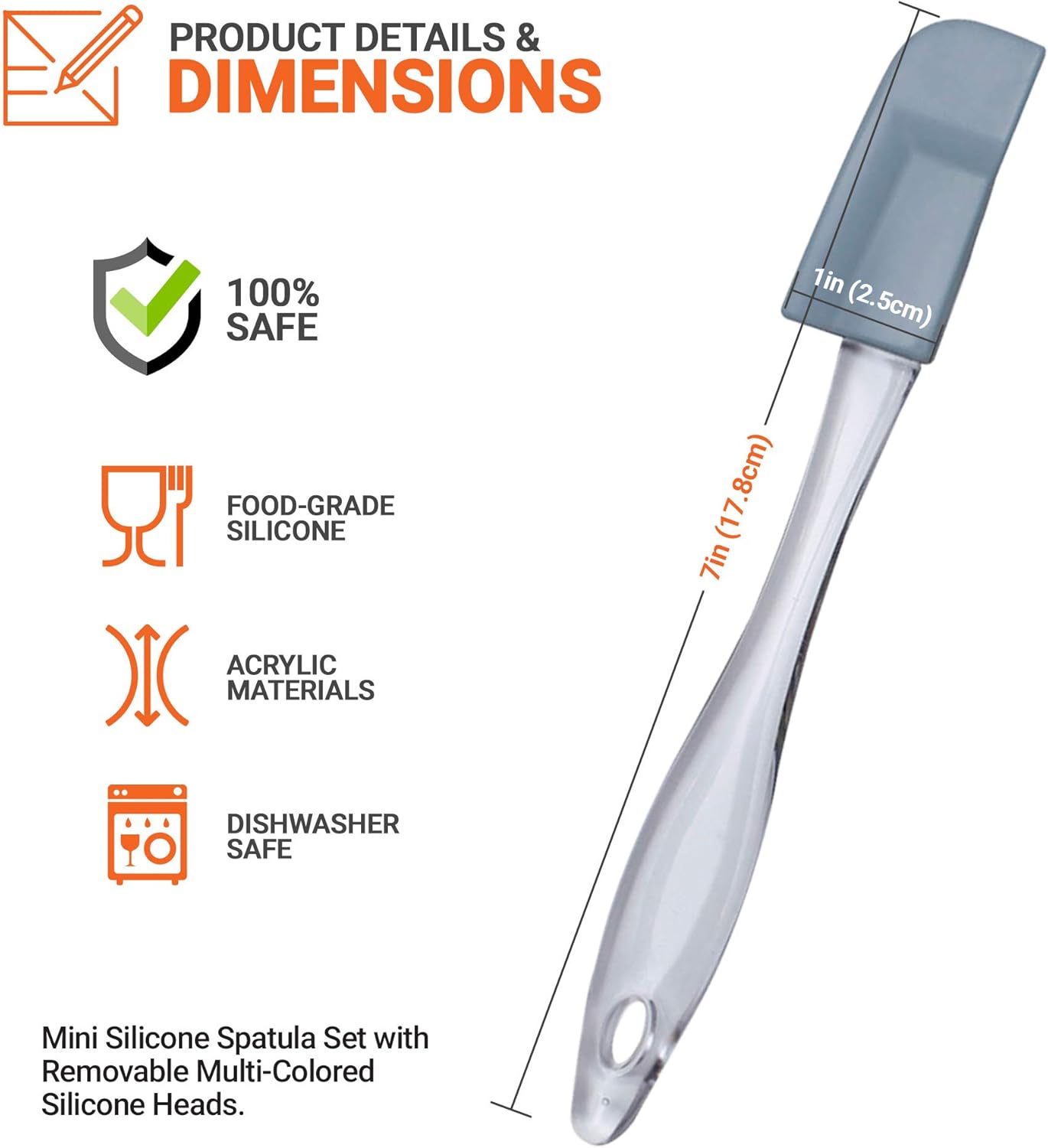 - EASY TO CLEAN: These mini spatulas for cooking or baking are designed with heads that can be removed from its handle which allows for perfect cleaning; Leaving bacterias and grimes no place to hide; Convenient to hang for keeping it dry and clean with its built-in hanging hole