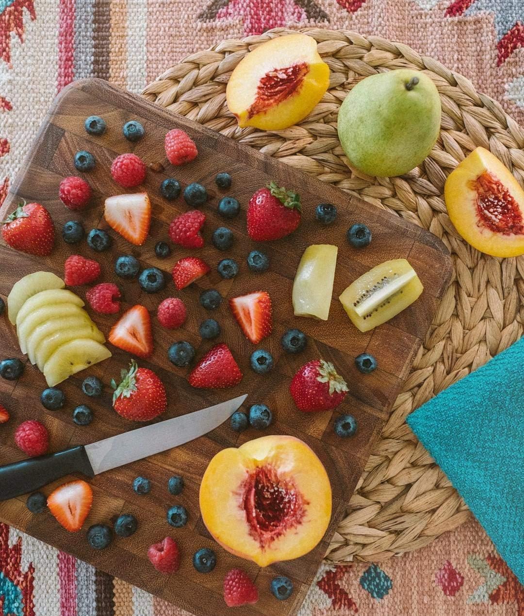 - DURABLE DESIGN: End grain wood minimizes wear and tear on both cutlery and board.