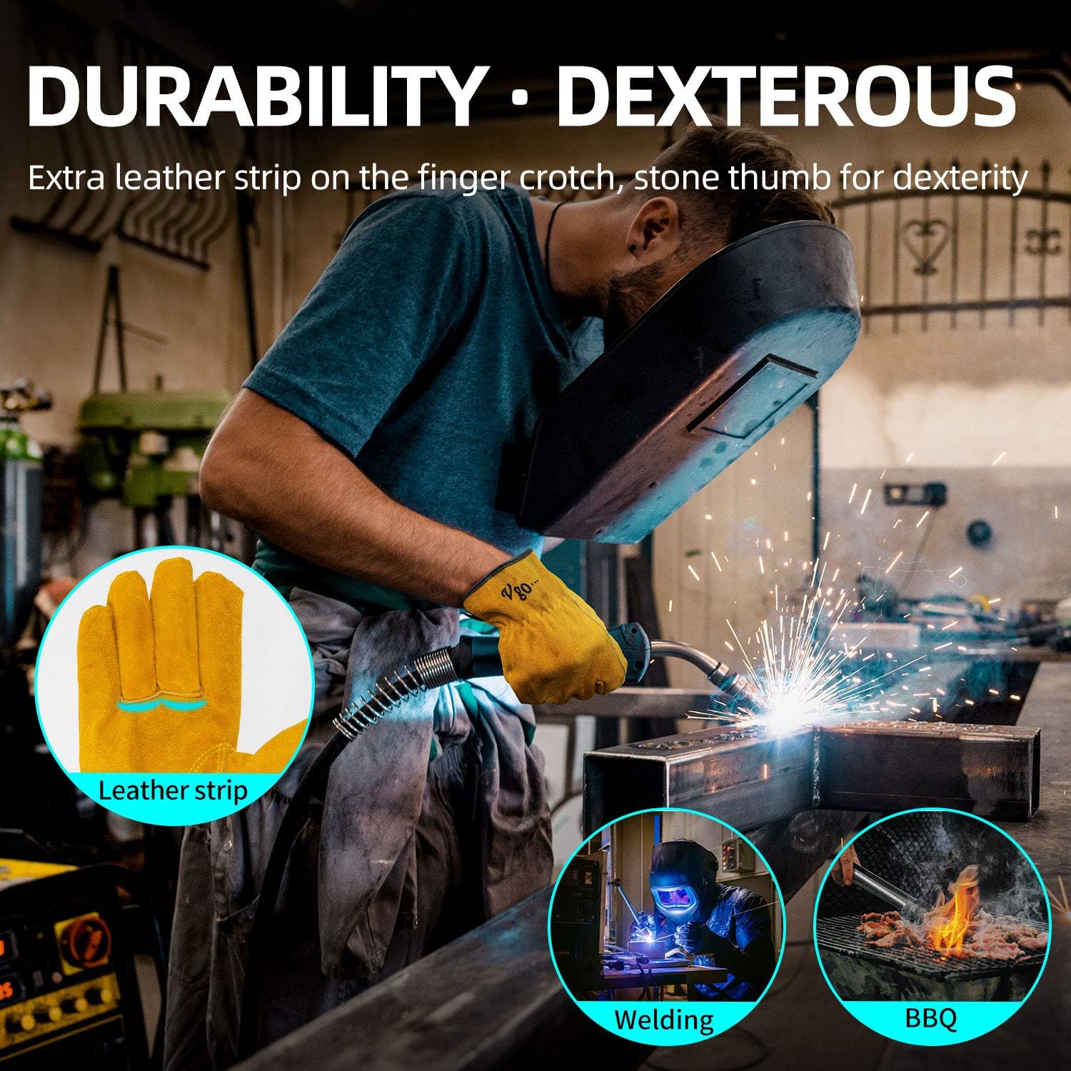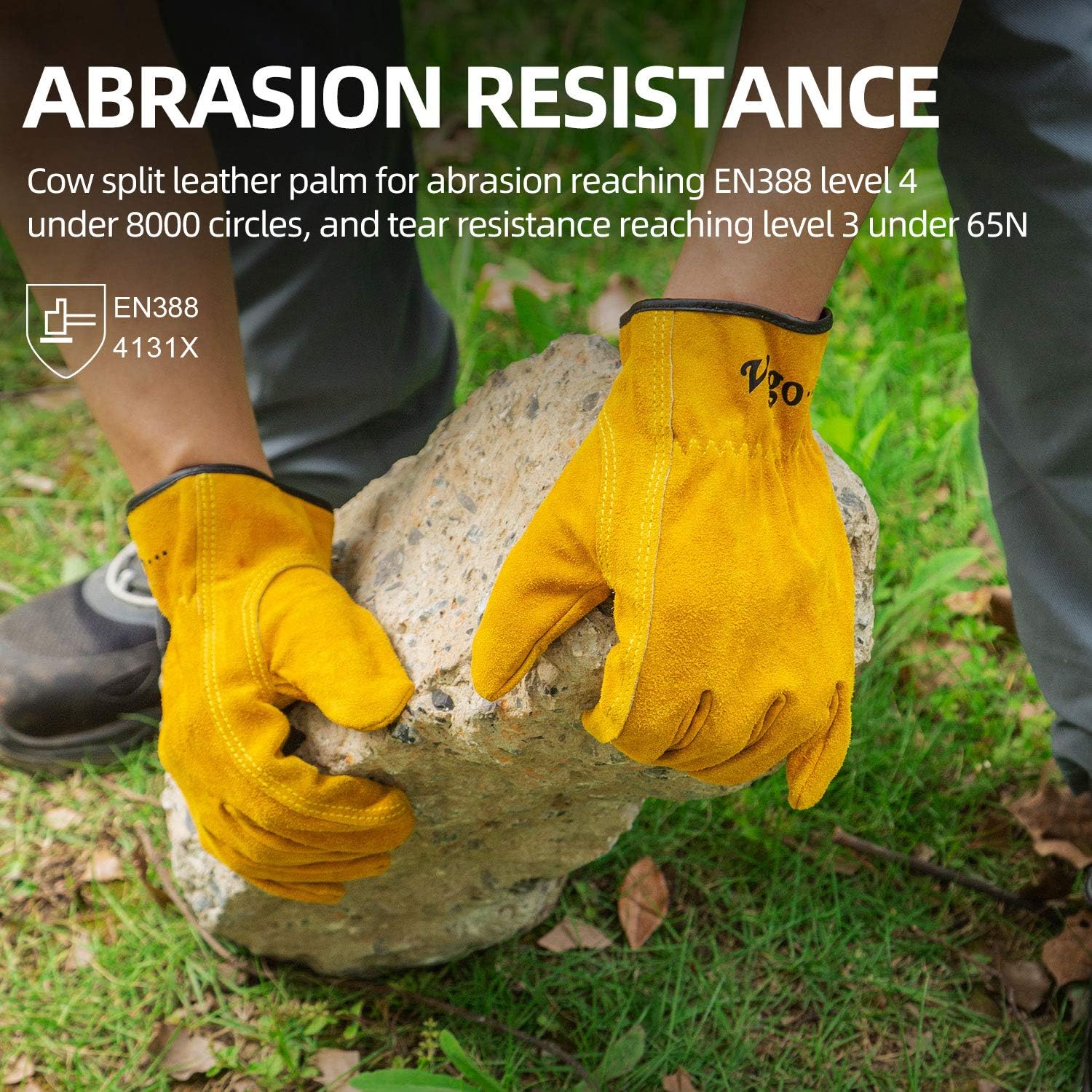 Vgo... 1-Pairs Unlined Cowhide Split Leather Work and Driver Gloves, for Heavy Duty, Truck Driving, Warehouse, Gardening, Farm (Size S, Gold, CB9501)