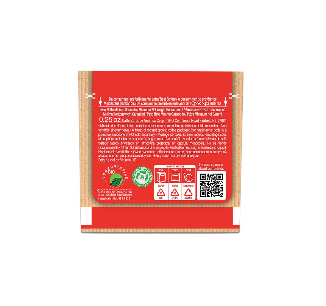 - Caffe Borbone Red Blend ese pods are crafted from a premium selection of robusta coffee bean blends and grounded and roasted to perfection for a delightful balance of intensity and smoothness with layers of complex flavors, including hints of caramel and cocoa