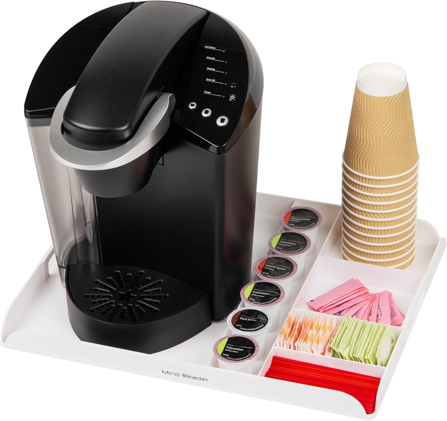 Mind Reader Coffee Station Serving Tray, 7 Pod Capacity Countertop Organizer, Storage, 17.5" L x 13.25" W x 1.25" H, Single, White