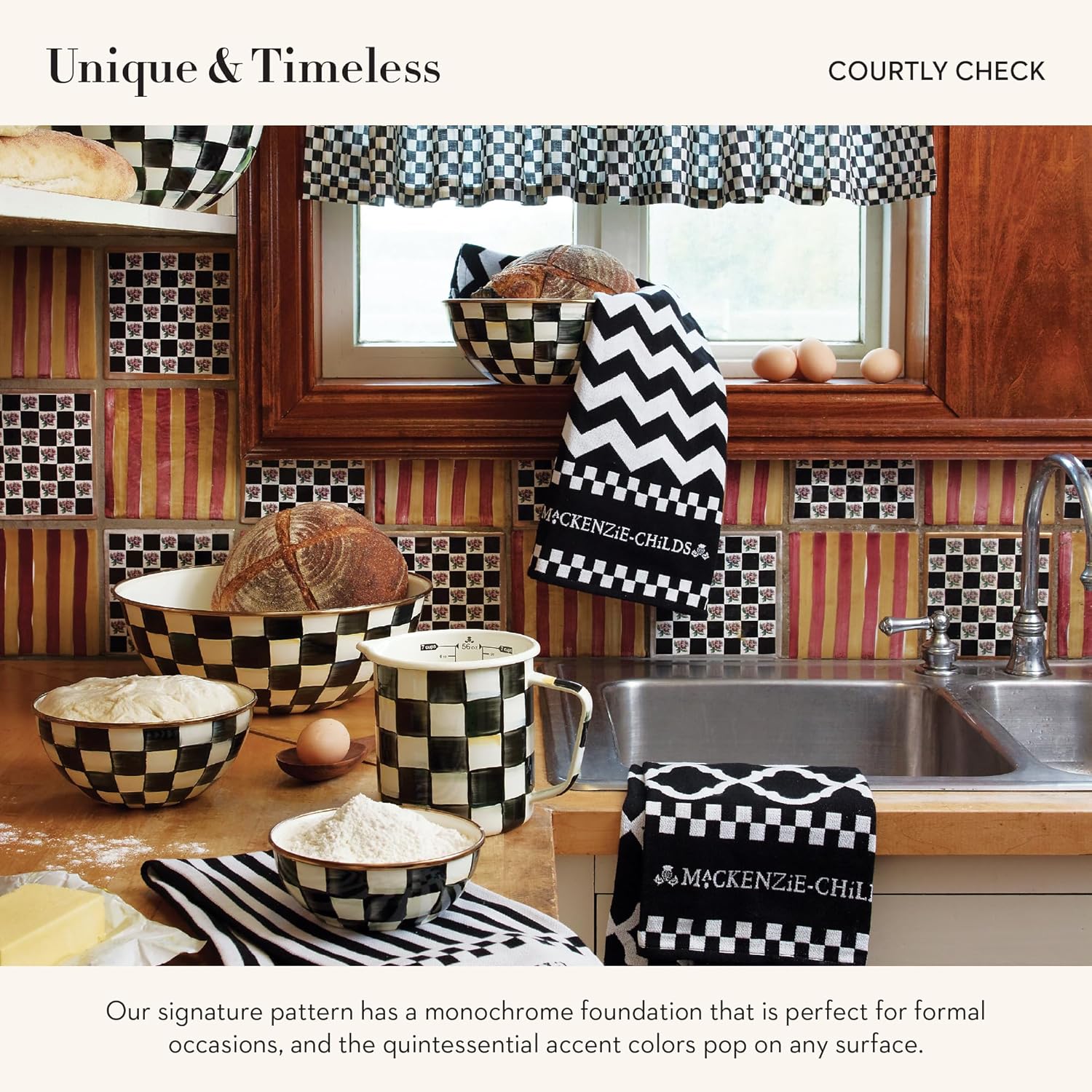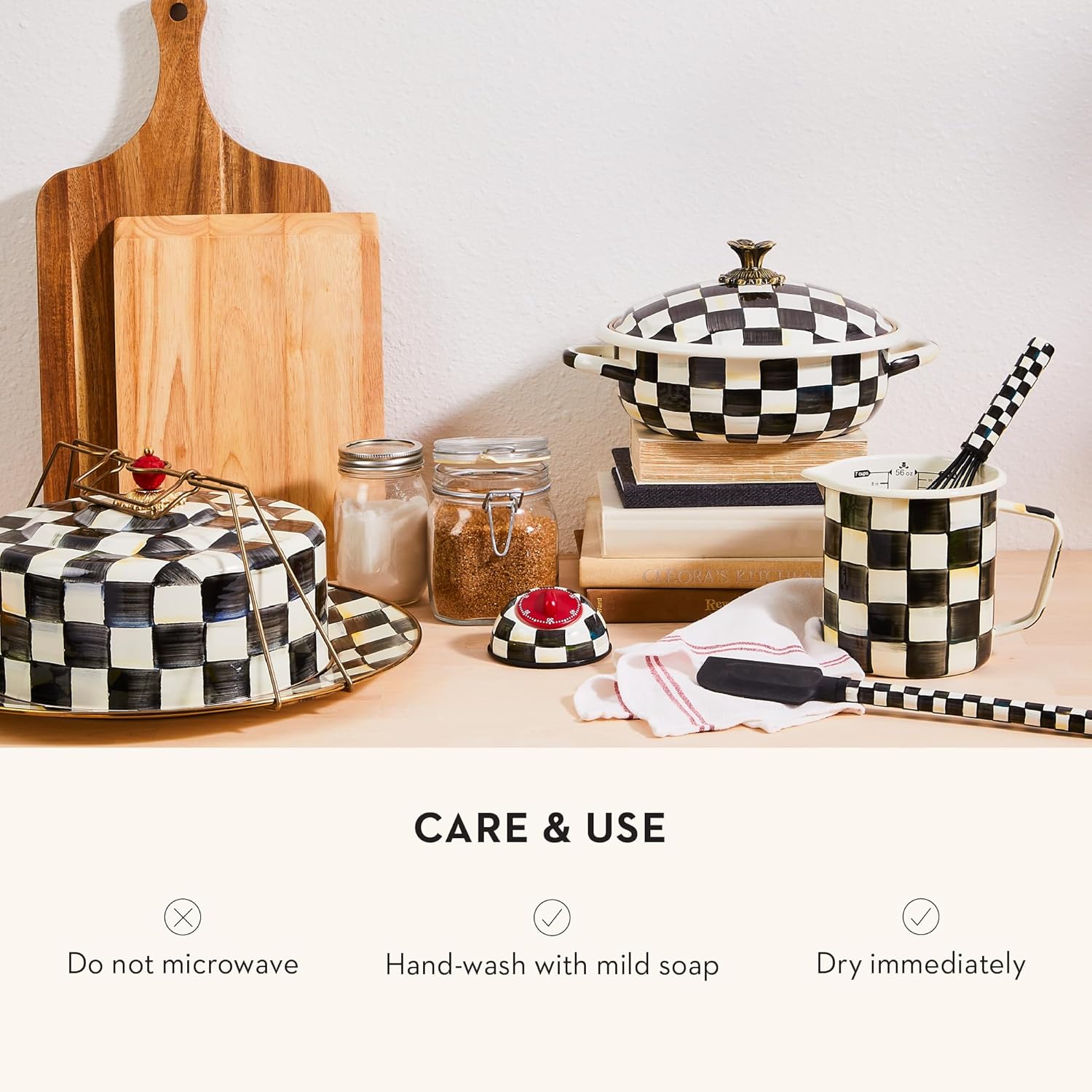 MACKENZIE-CHILDS Enamel 7-Cup Measuring Cup, Decorative Measuring Cup with Spout, Black-and-White Courtly Check