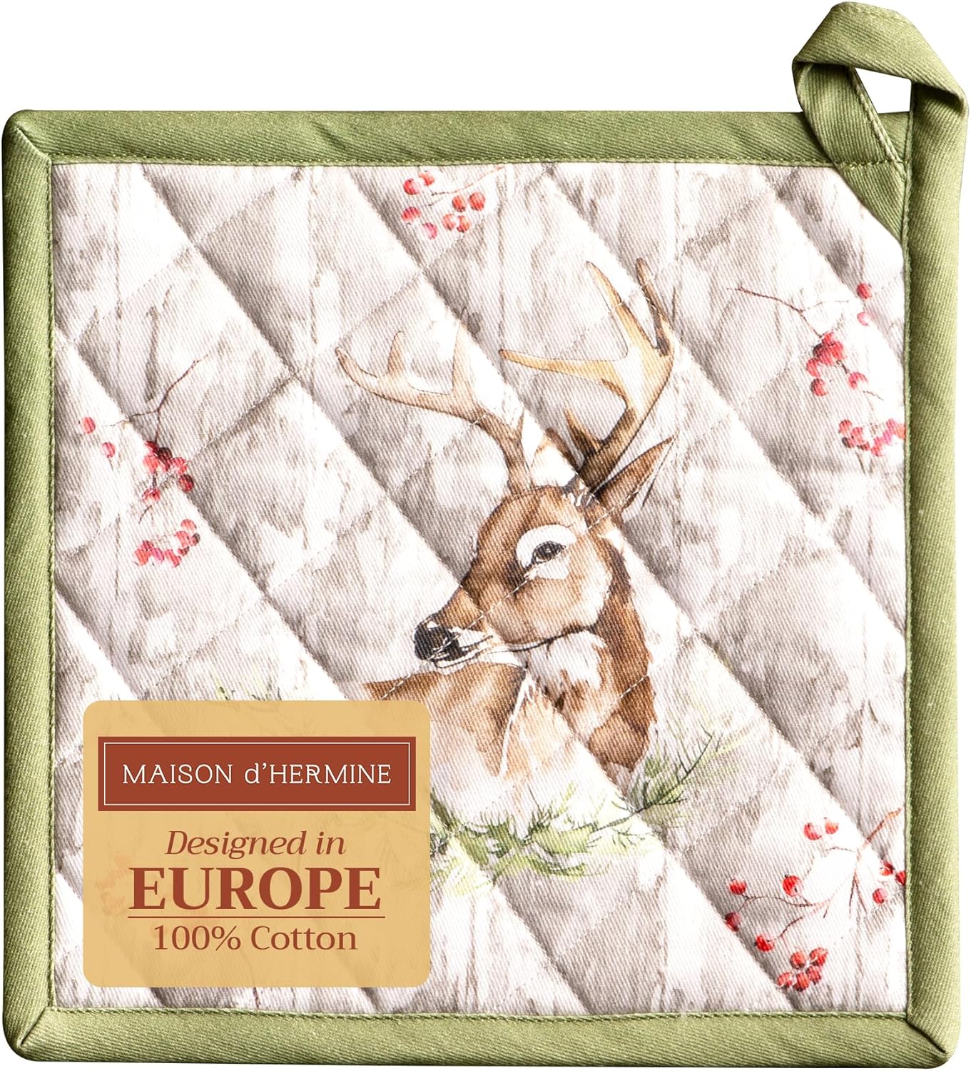 Maison d' Hermine Pot Holders 100% Cotton Heat Resistant Potholders 8" x 8" Hot Pads with Loop BBQ, Cooking, Baking, Grilling, Kitchen, Handling Hot Pans (Pack of 1, Mountain Life)
