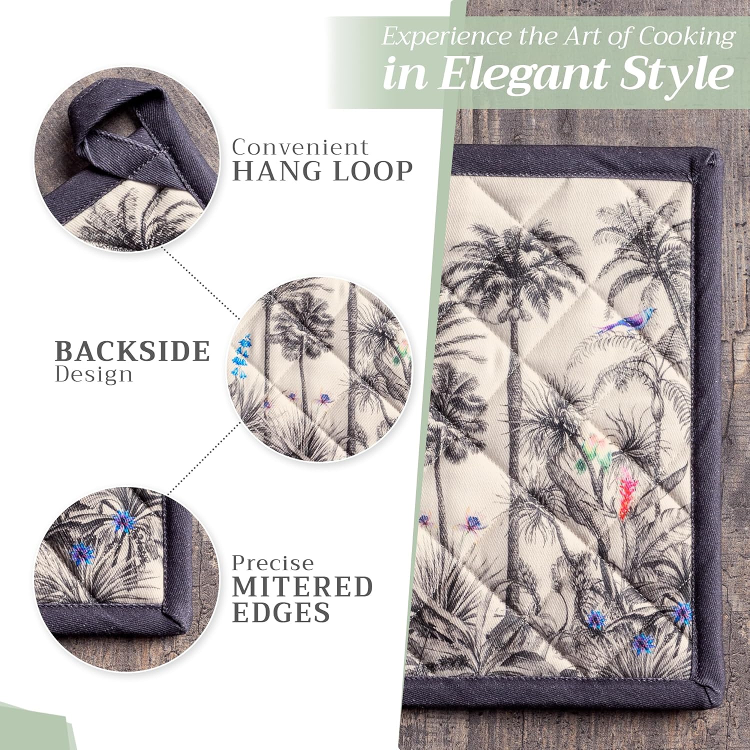 Maison d' Hermine Pot Holders 100% Cotton Heat Resistant Potholders 8" x 8" Hot Pads with Loop BBQ, Cooking, Baking, Grilling, Kitchen, Handling Hot Pans (Pack of 1, Amazonia)