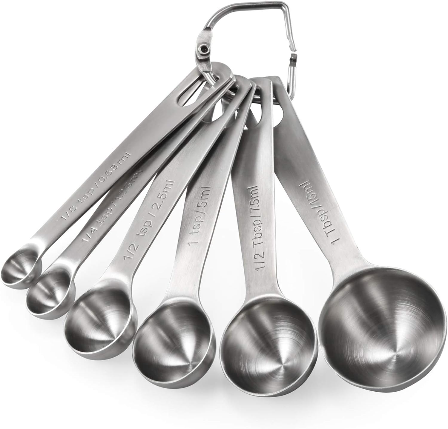 Measuring Spoons: U-Taste 18/8 Stainless Steel Measuring Spoons Set of 6 Piece: 1/8 tsp, 1/4 tsp, 1/2 tsp, 1 tsp, 1/2 tbsp & 1 tbsp Dry and Liquid Ingredients