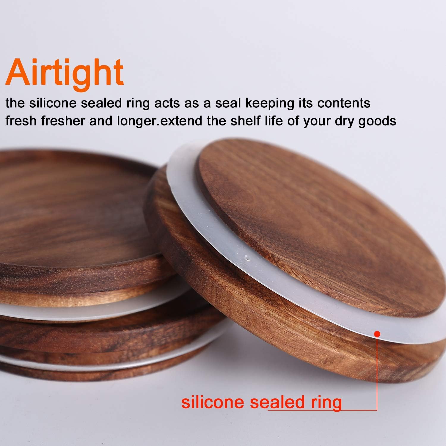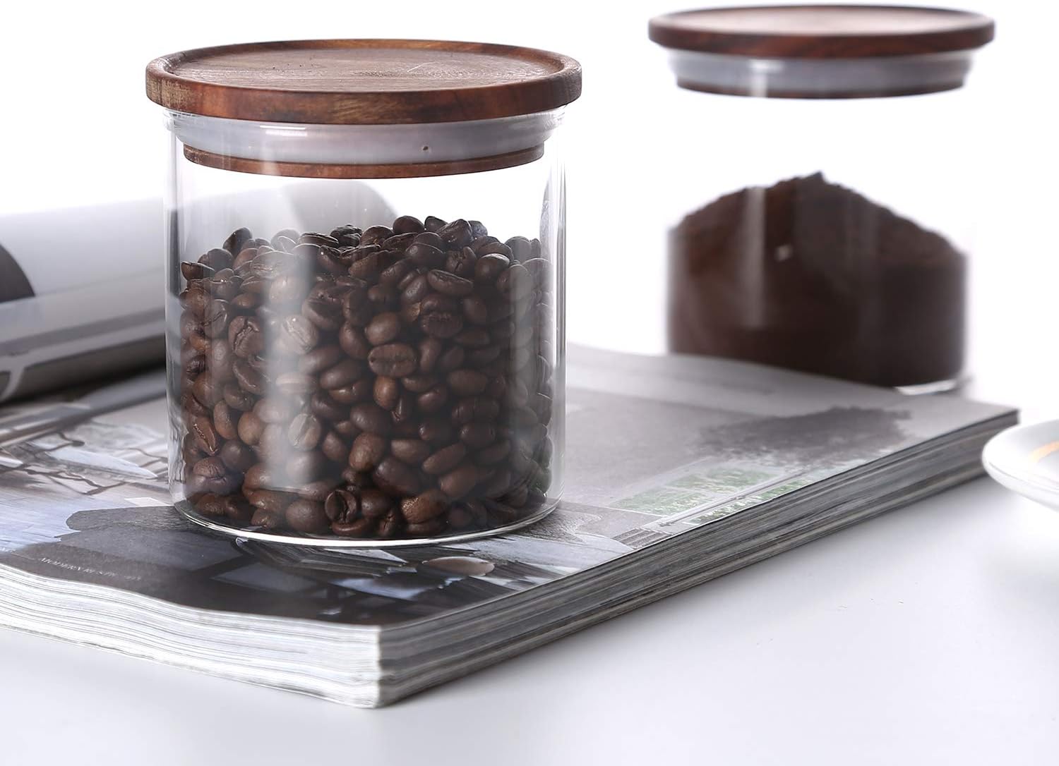 - Airtight Glass Jars:The airtight wooden lid has a silicone sealed ring,the silicone sealed ring acts as a seal keeping its contents fresh.perfect for storing coffee beans,loose leaf tea,cocoa,matcha,loose leaf tea,coffee beans,ground coffee,brown sugar,sea salt,etc.