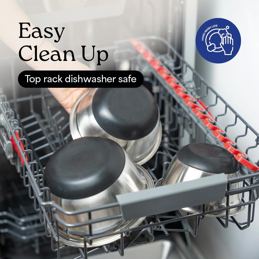 - Effortless Cleanup with Dishwasher Safe Design: Our stainless steel metal mixing bowls with lids are dishwasher safe, allowing you to focus on what you love - cooking and baking. Skip the tedious task of hand-washing and enjoy more time to savor your delicious creations. This convenient feature is especially beneficial for home chefs desiring practicality without compromising on the professional quality and precision of your kitchen tools.