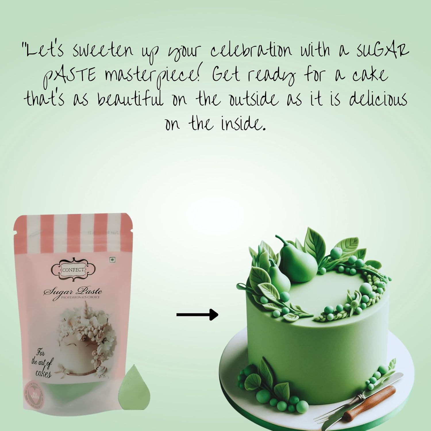 Confect Pea Green Fondant for Cake Decorating | Smooth & Ready-to-Use Icing for Christmas Cakes, Cupcakes & Holiday Treats | Vegan, Gluten-Free, Nut-Free, Palm Oil-Free – 8.8 Oz