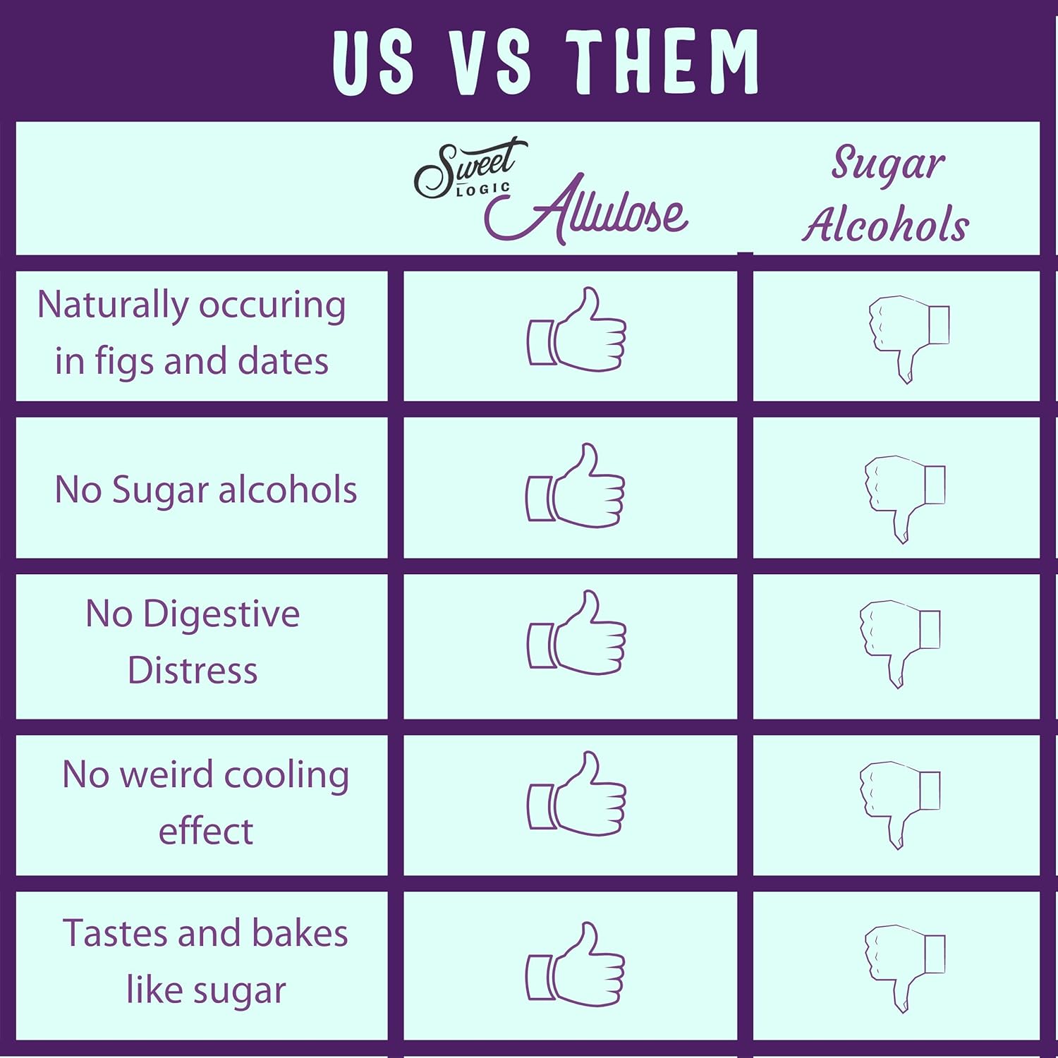- AS SWEET AS SUGAR: Use the Sweet Logic Pure Allulose in all your favorite low-carb keto foods, including baking, sugar-free ice cream, coffee, and tea. This low-calorie, natural sugar substitute is perfect for baking and suitable for diabetics. It’s 70% as sweet as sugar but has only 10% of the calories.