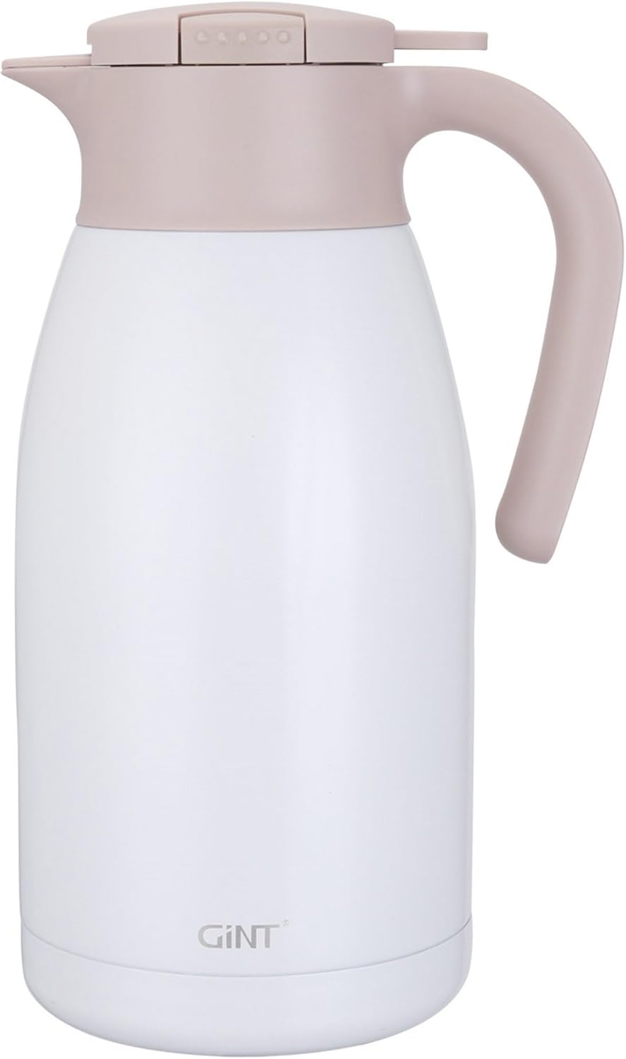 GiNT 1.9L / 64Oz Thermal Coffee Carafe, Insulated Stainless Steel Coffee Carafes for Keeping Hot/Double Walled Vacuum Thermal Carafe (White)
