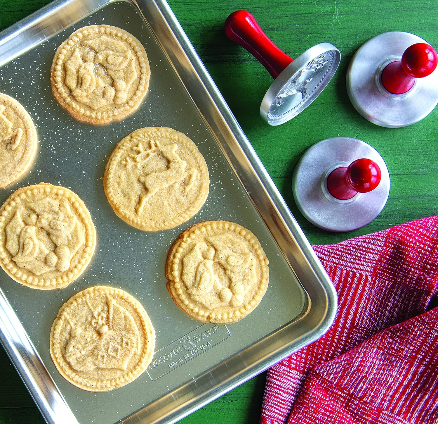 Nordic Ware 01236 Yuletide Cast Cookie Stamps, 3-inch rounds, Silver