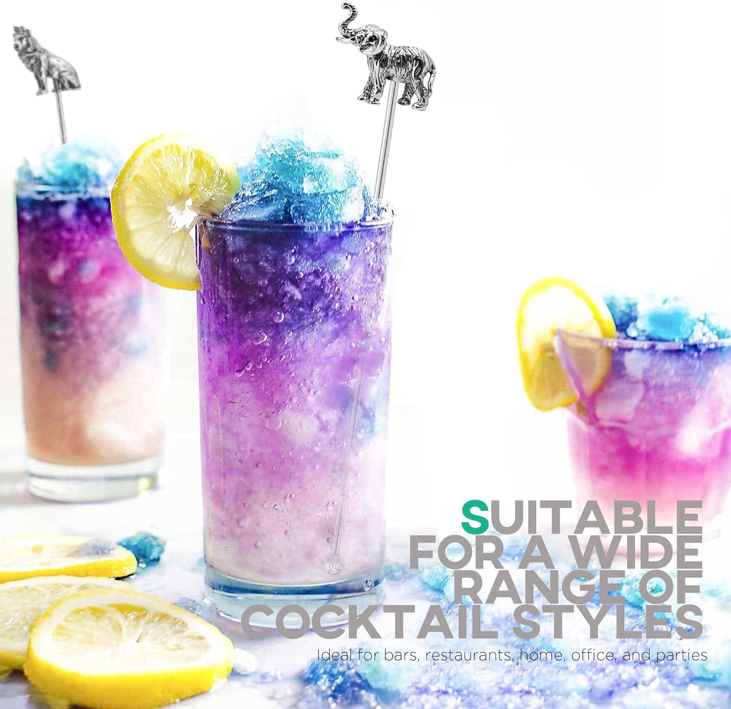 - OPERATION: The stirrer's head is adorned with an animal decoration, not only adds a touch of character to your barware but also serves as a functional handle, making it easy to maneuver and control the rod with precision. The size and weight of this mixing rod are just right, by gently twirling the swizzle stick, you can effectively blend the flavors without disturbing the ice or garnishes.