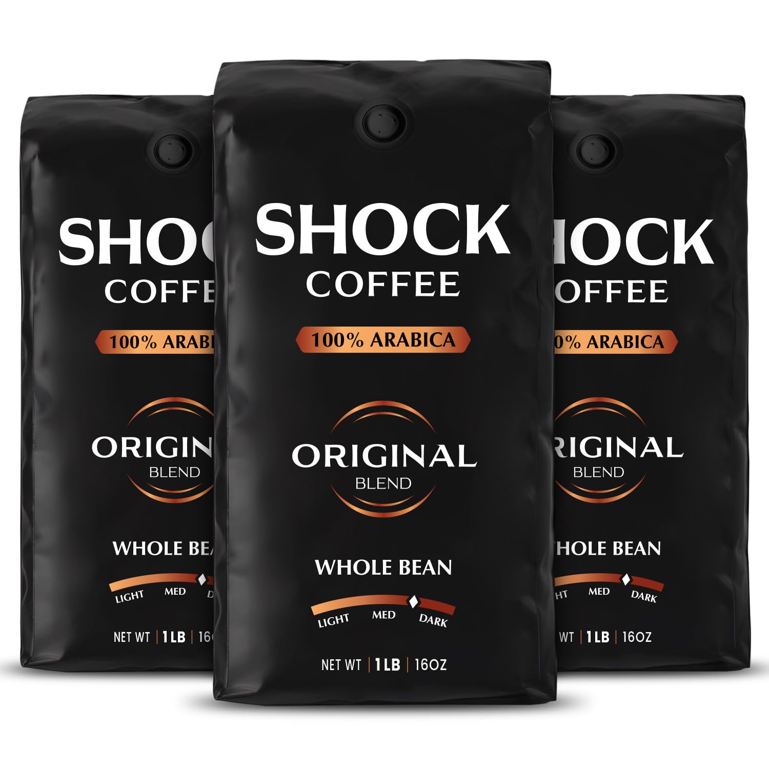 Shock Coffee Whole Bean, The Strongest Caffeinated All-Natural Coffee, Up to 50% more Caffeine. 3 LB