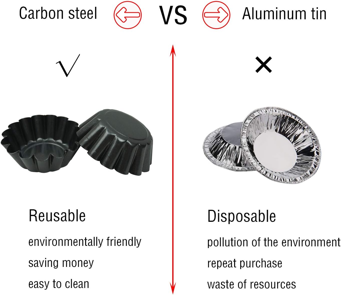 - Reusable and high temperature resistant mini pie tins- carbon steel material, better than disposable aluminum, can be reusable; temperature resistant up to 446℉, useful for oven