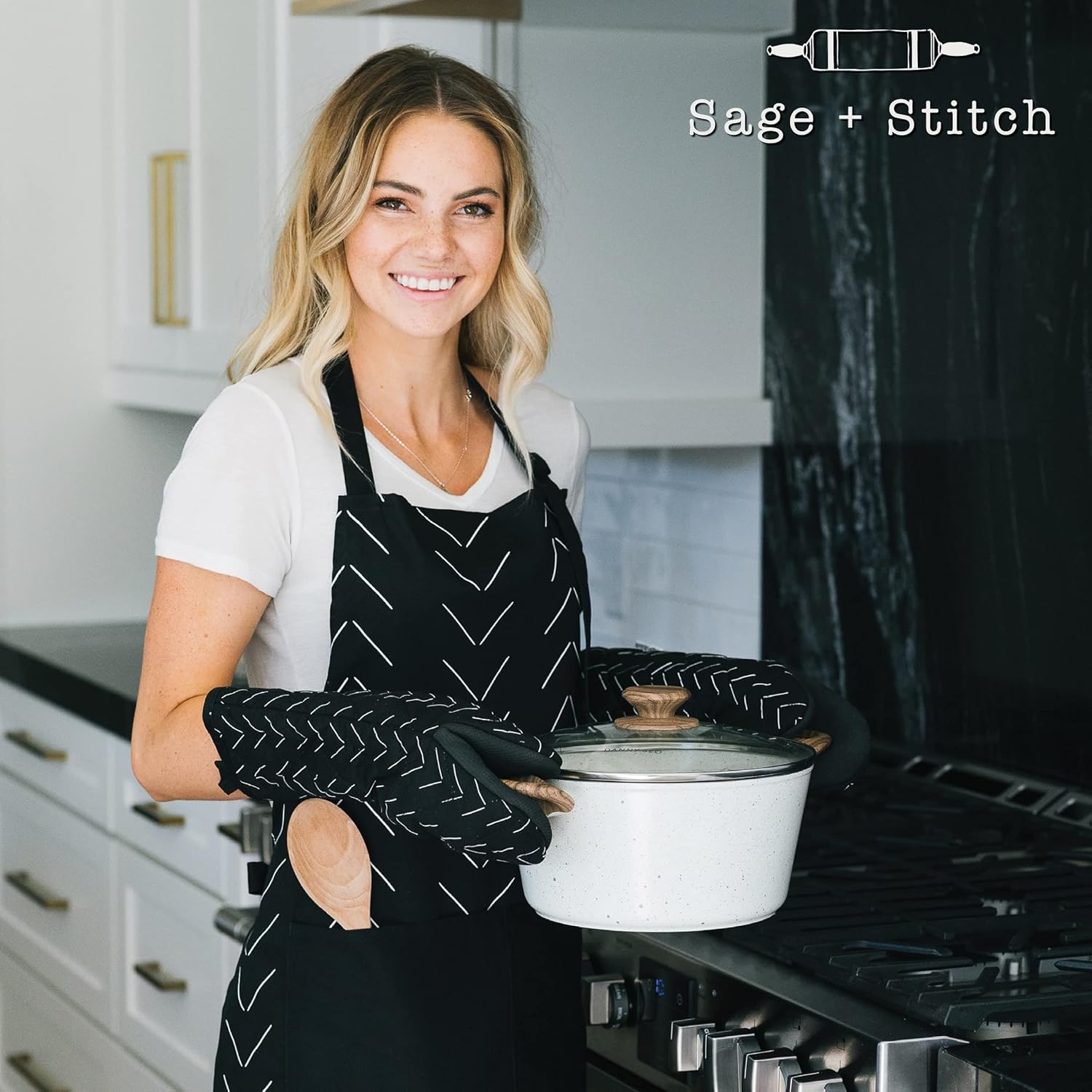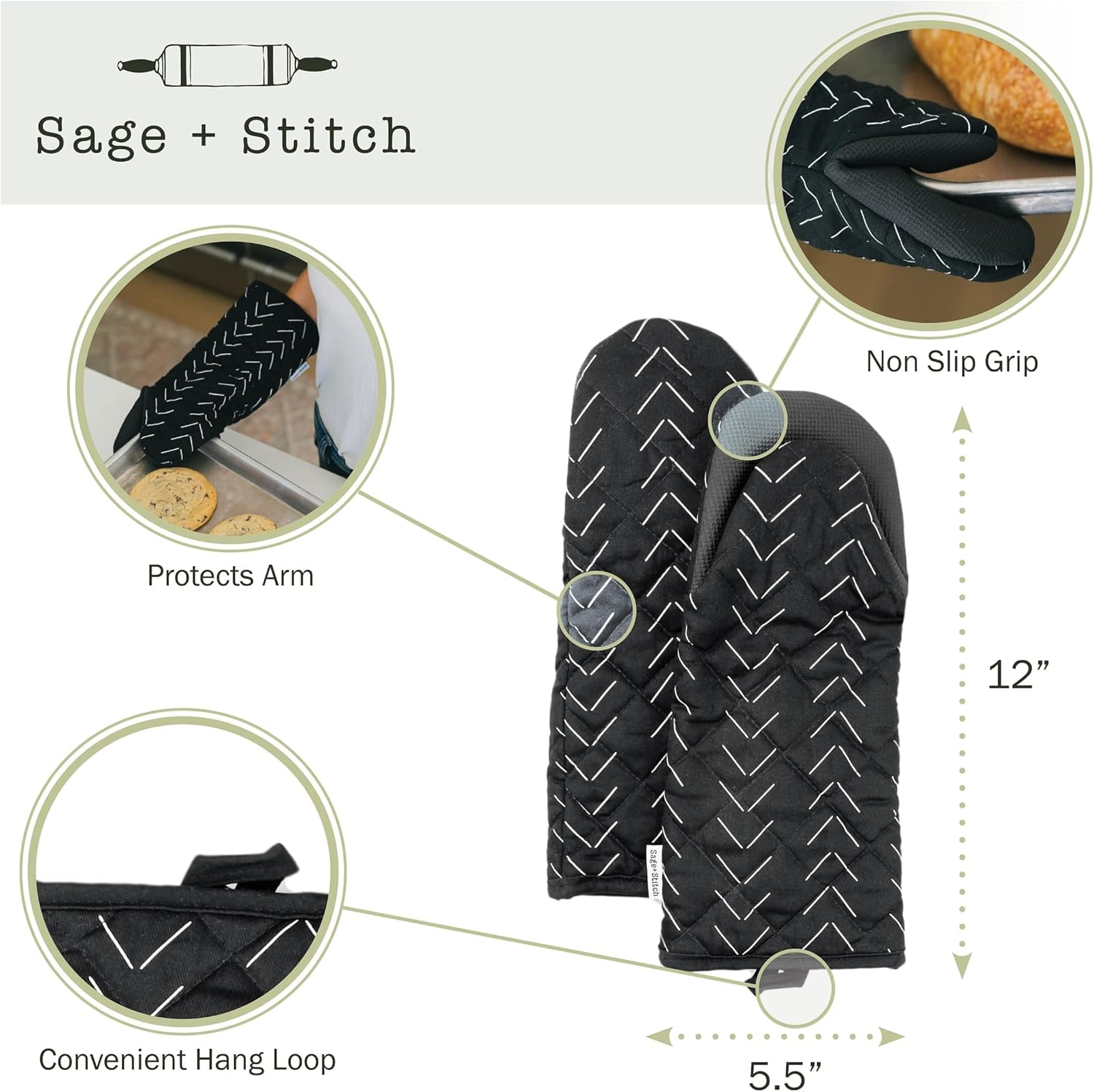 - Designed with You in Mind: Each Sage and Stitch Heat Resistant Designer Kitchen Oven Mitt set has a unique pattern so that you can stand out in your kitchen. Now you can toss away those plain black oven mitts and use something that fits your unique style! No matter your taste, our extra large oven mitts are designed with you in mind!