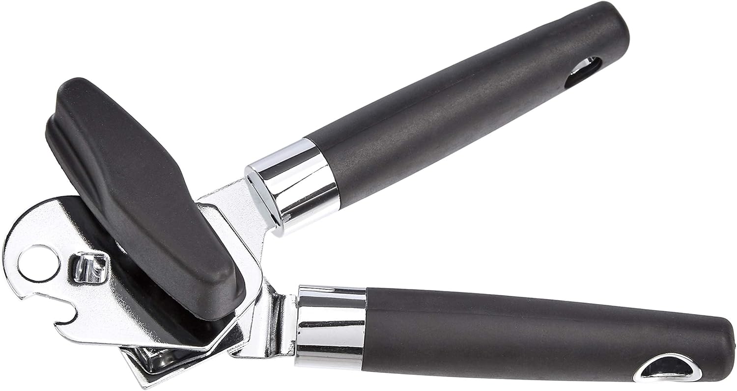 Amazon Basics Multi-function Manual Can Opener and Bottle Opener, 22 cm, Black Soft Grip Dual Handle